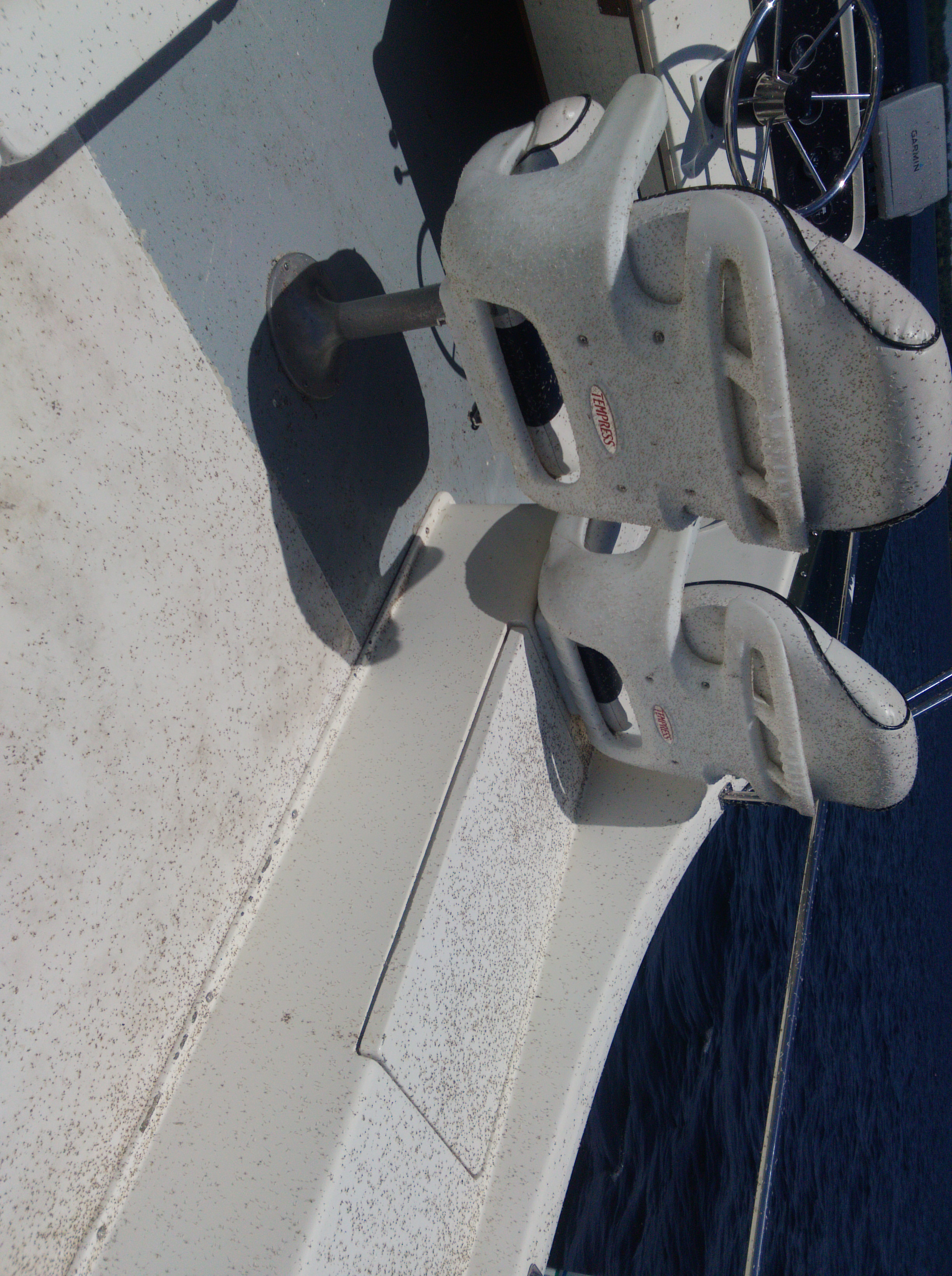 Now this is a bit alarming, mostly because I’m nervous of catastrophic motor failure. I had visions of getting towed into port and admitting defeat. Boat is drifting pretty fast in a 15 – 20 knot breeze, but I’m well clear of any hazards. So I stood on the bow and picked a weed free area to drop the anchor. Set first try, all secure. It’s a bit bouncy, but just below my threshold for nausea. But just the same I’m playing it safe. Forecast is for the wind to drop off slightly, it’s a lovely sunny afternoon. So I make myself a meal, dribble another couple of cups of water out of my empty tanks, catch up on some news, just chill for an hour. Let the motor cool down.