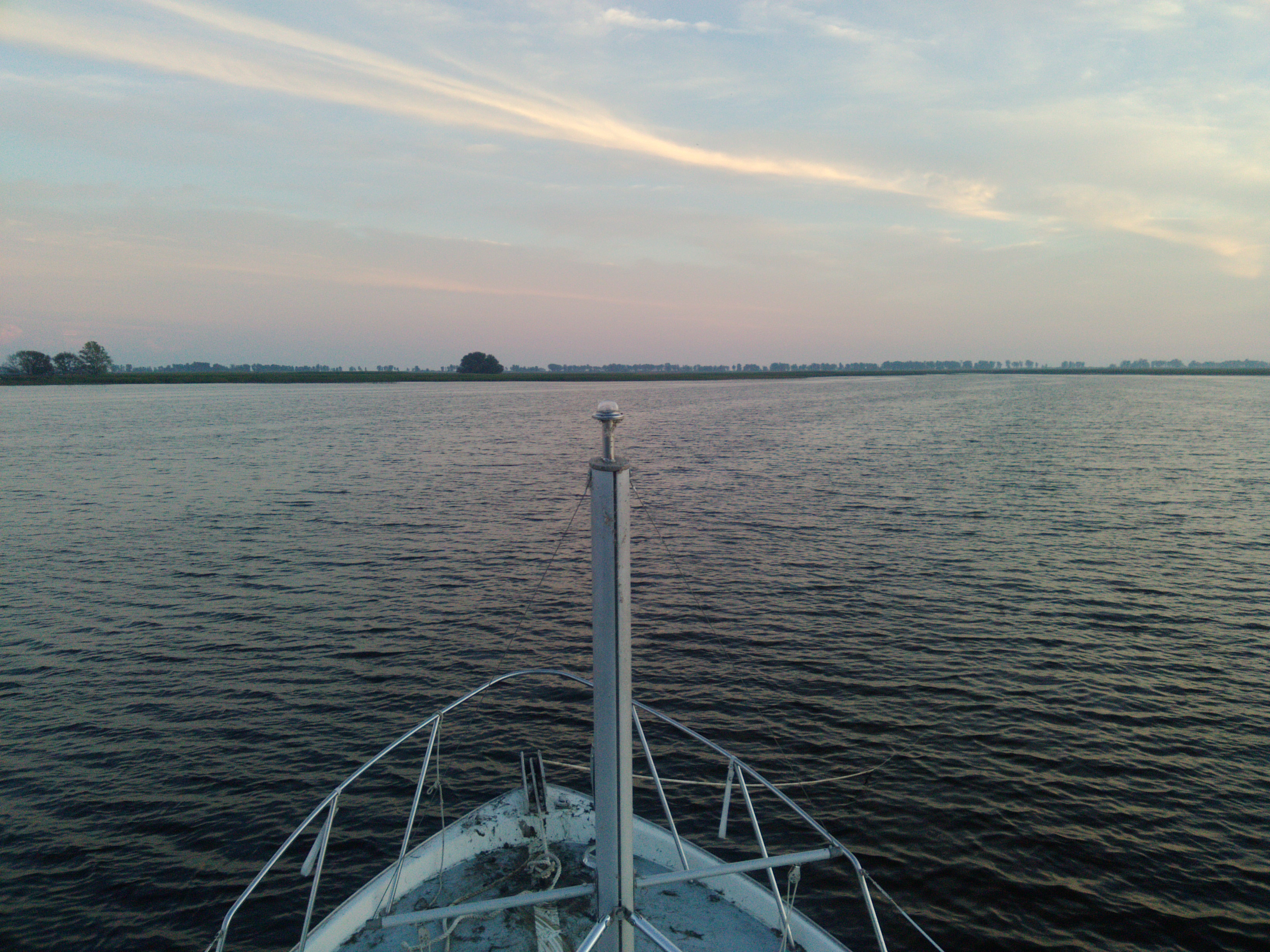 So I set out towards the middle of the bay. Have a chart on my phone, but it is of limited use. Then I hit weeds, and went from 20 knots to two. And it started raining harder, so I really couldn’t use my phone. And it’s now pretty much completely dark. There is lightning to the northwest, maybe coming my way.