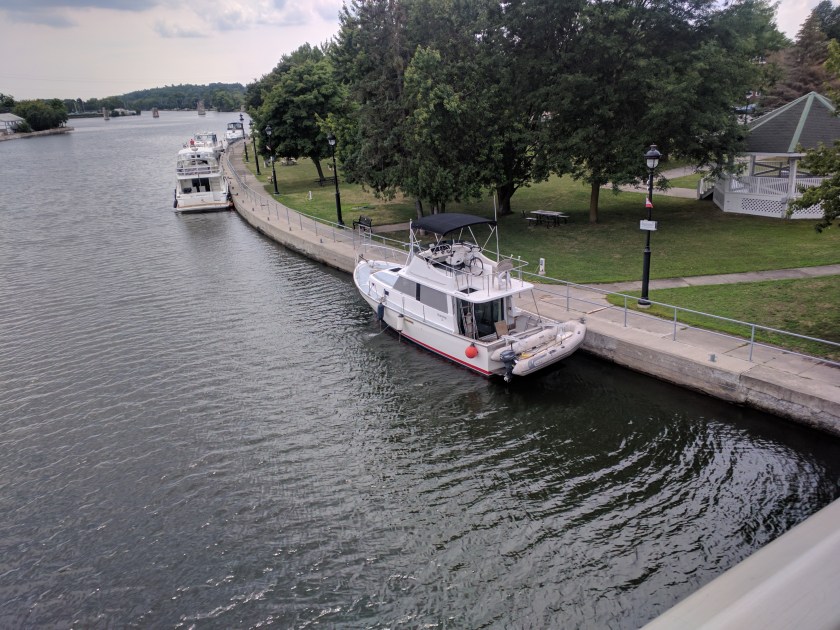 I stopped today at around 1 at the park in Campbellford. Nice spot, with power and water. After lunch I did some further cleaning and organizing, and have decided to stay put here. Sarah is picking me up later this evening and taking me to fetch my car and trailer in Bowmanville, then it’s back to Guelph for a day or two to do some fencing there, then back to the boat for a couple of weeks to carry on.