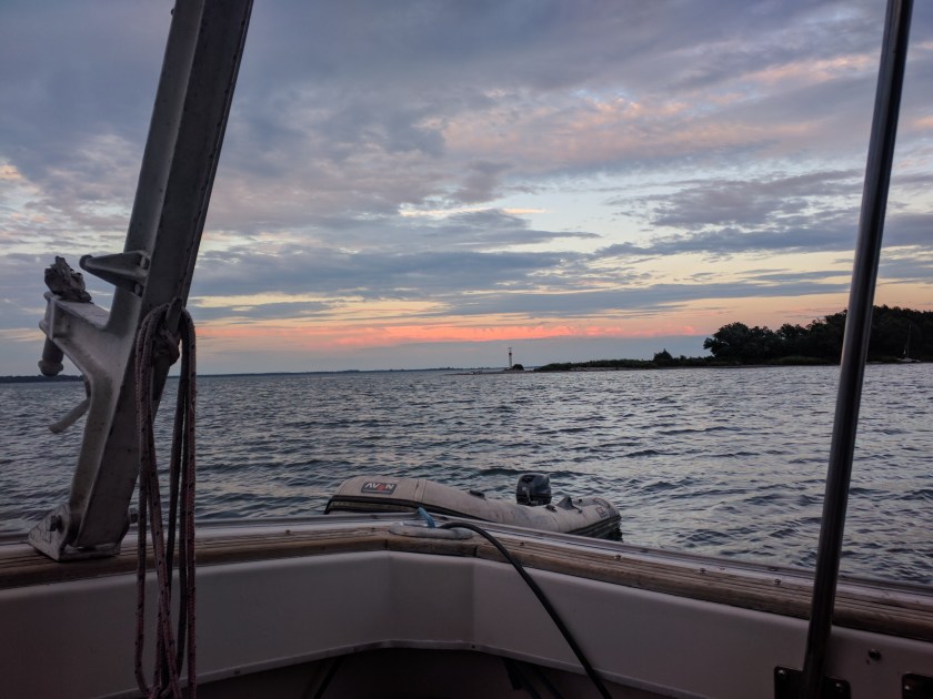 Meant to write earlier. I’ll try to fill in the deets later, but all is good. Had the motor professionally repaired and fixed the niggling electrical problems and all systems are good. I launched on the weekend at Bowmanville, set out Tuesday evening, and had a marvelous trip down the lake at night to Presqu’ile and anchored just inside the point. Next day I didn’t move. Napped and started to clean up and organize.