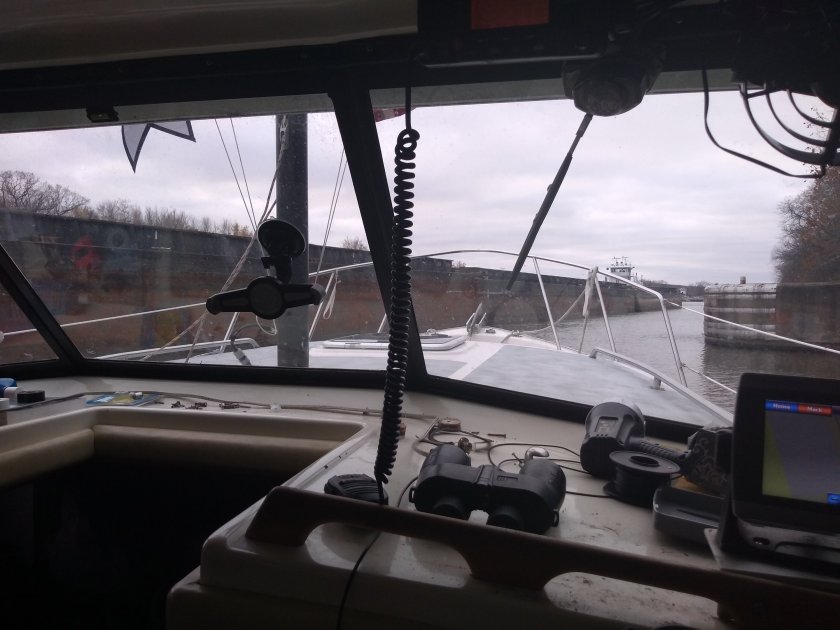 No real drama today. It’s chilly outside, around 5c today, but I keep the heat on inside and spend most of my time there. I took advantage of the delays at locks to tidy up and fine tune my new electronics. The radar is great. I didn’t have any problems coming in here after dark and felt comfortable operating from inside.