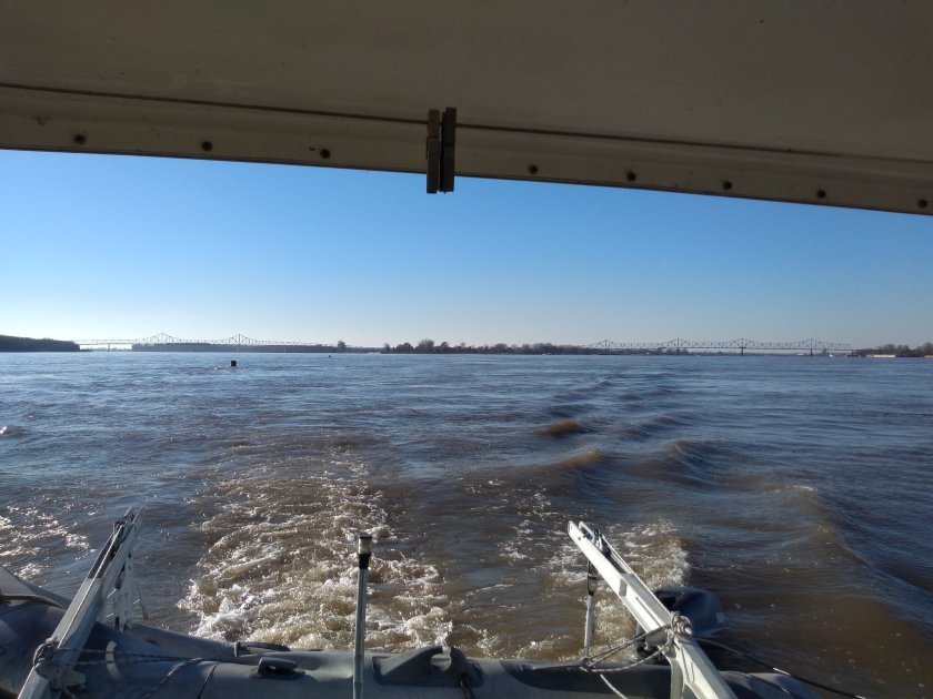 Well, that’s it. Turned the corner at Cairo and continued downstream. I’m anchored here, at mile 930. The mile numbering is now distance to the mouth of the Mississippi.