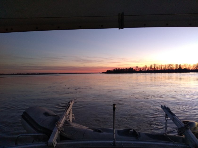 1. Good days run. Making good time! Sorry to hear about the generator. Hopefully in Memphis you have a marina lined up and can get parts to get her running again. Hang in there tonight. Looks like it will get pretty cold but not in a danger range for major freezing. Have a good nights rest.