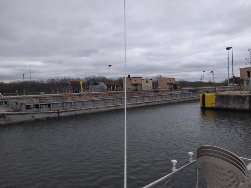 I’m quite keen on these municipal visitor’s docks with power. I’m relying on AC all the time now for heat. So today’s trip was 80 miles with one lock at Starved Rock not far from Ottawa. I got underway at 0600, caught a break at the lock, and noodled along the rest of the day.