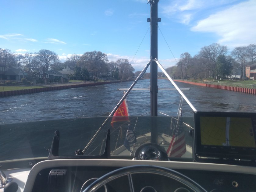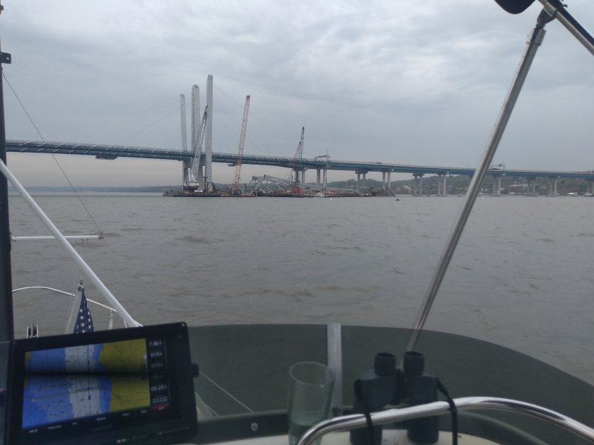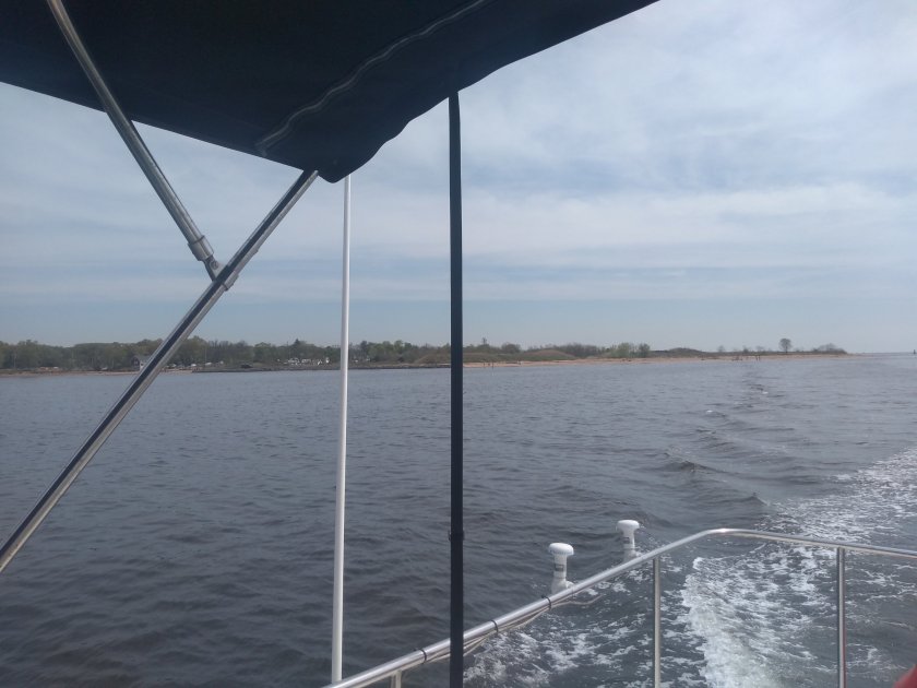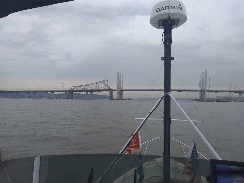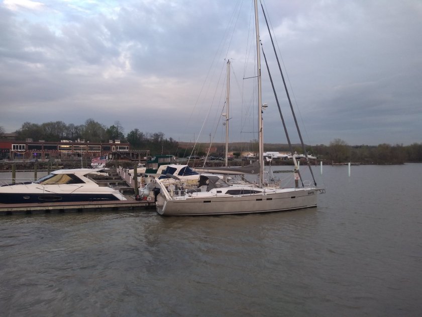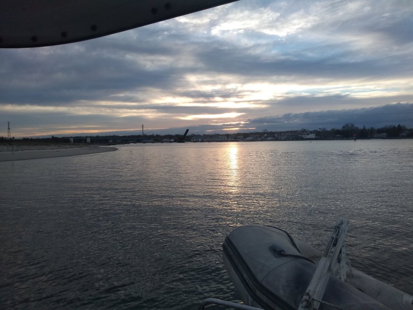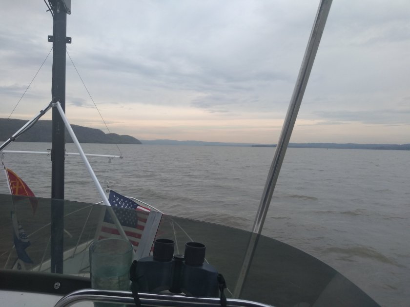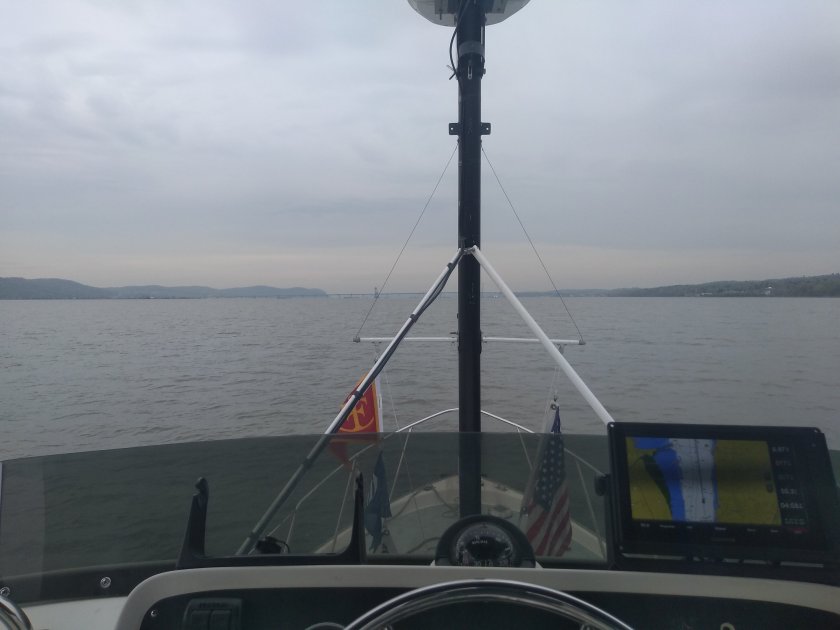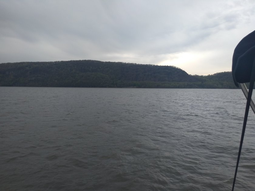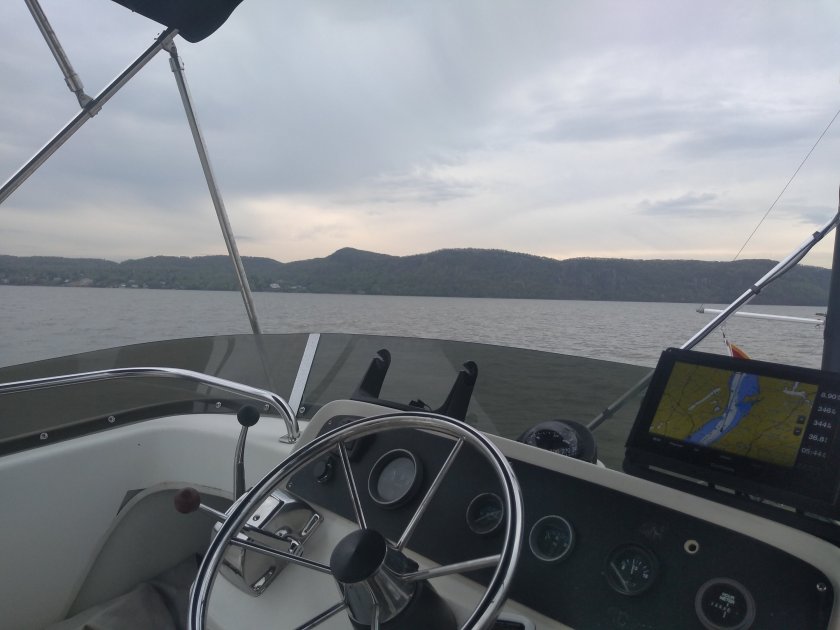 It was starting to rain as I stopped for the day near Peekskill. Right next to the nuclear power plant, in a little inlet off the river, here. About 5 feet of water, snug and protected.