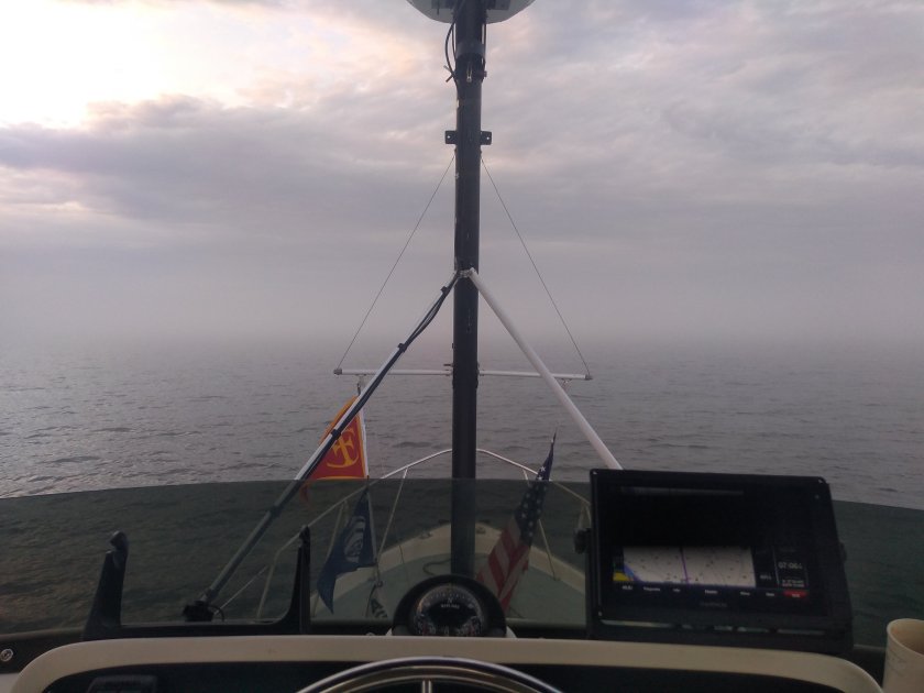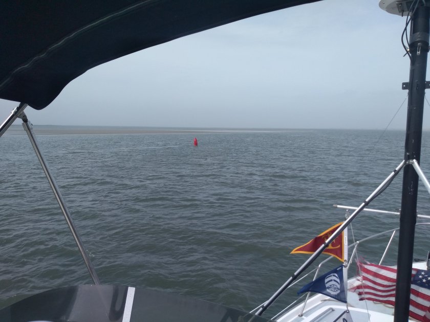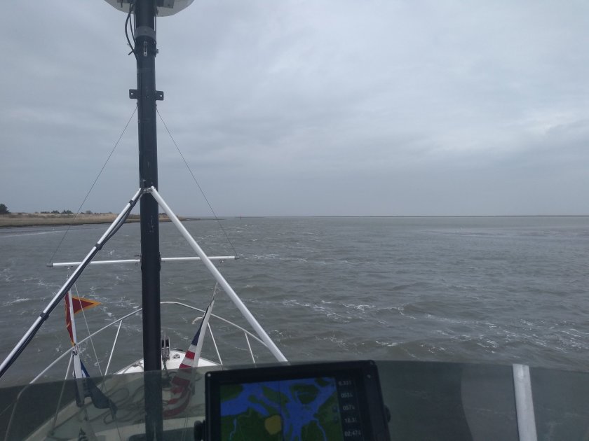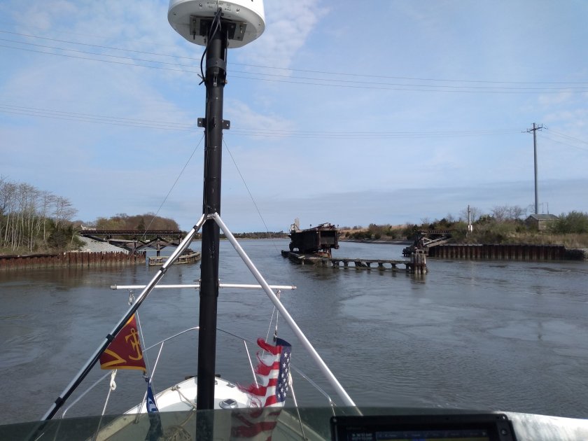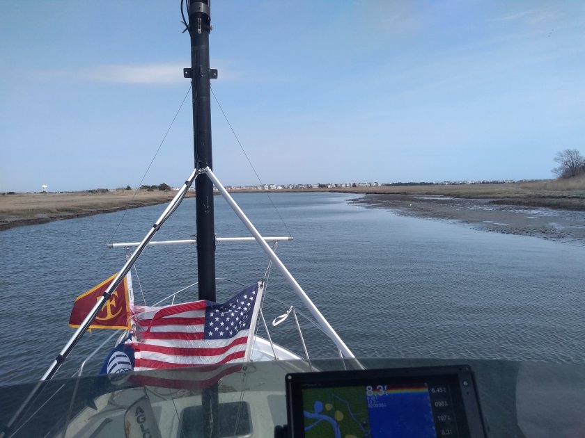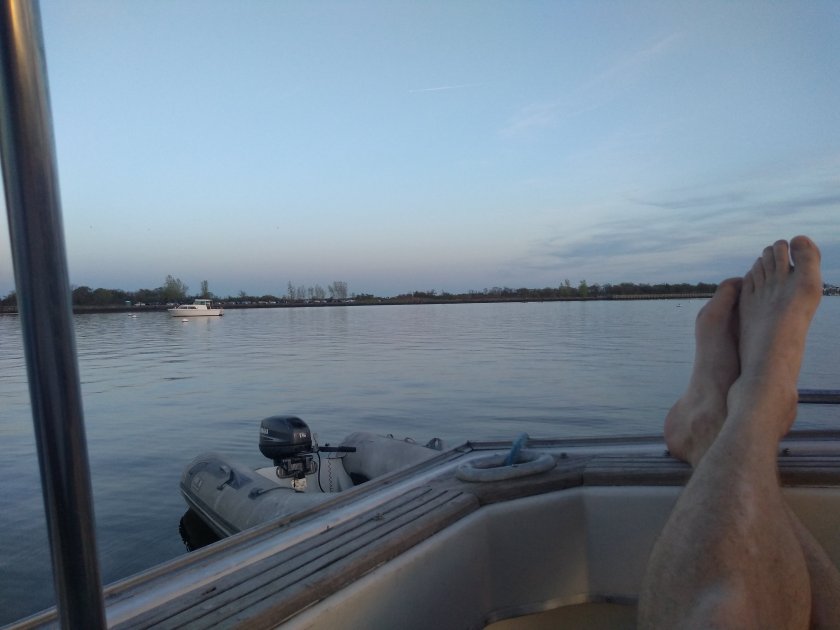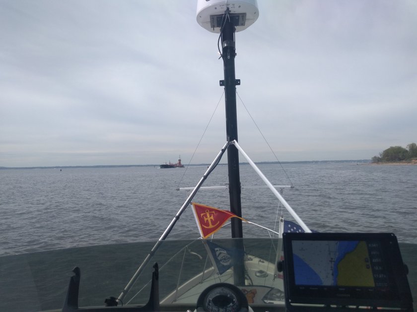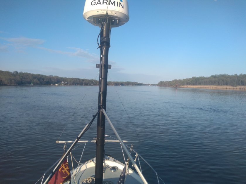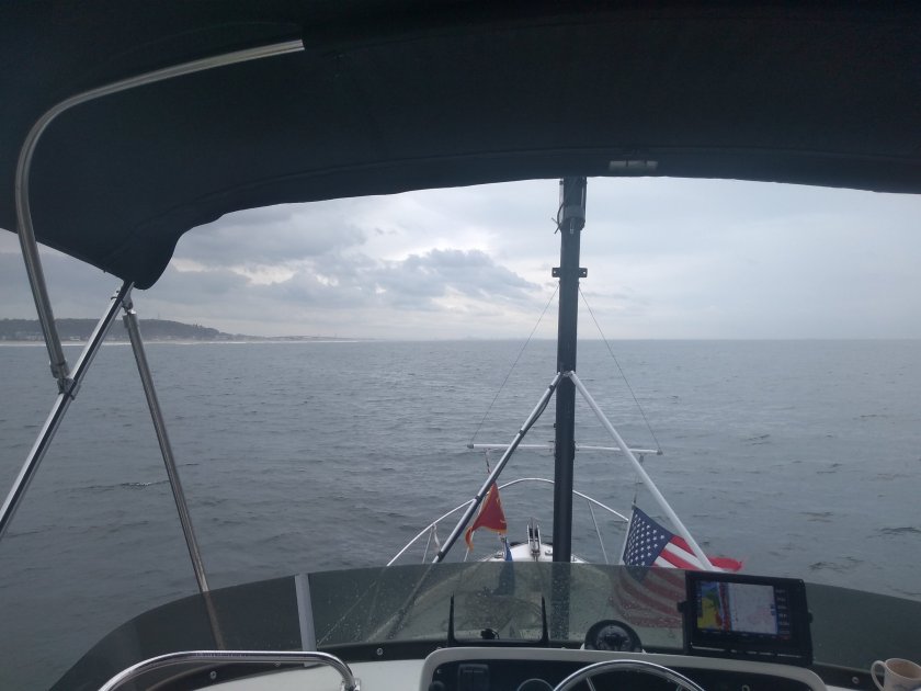 It was starting to rain as I stopped for the day near Peekskill. Right next to the nuclear power plant, in a little inlet off the river, here. About 5 feet of water, snug and protected.