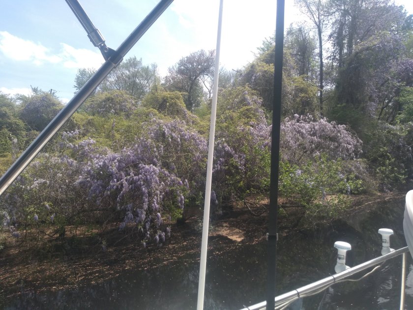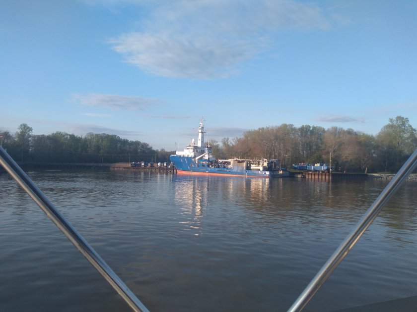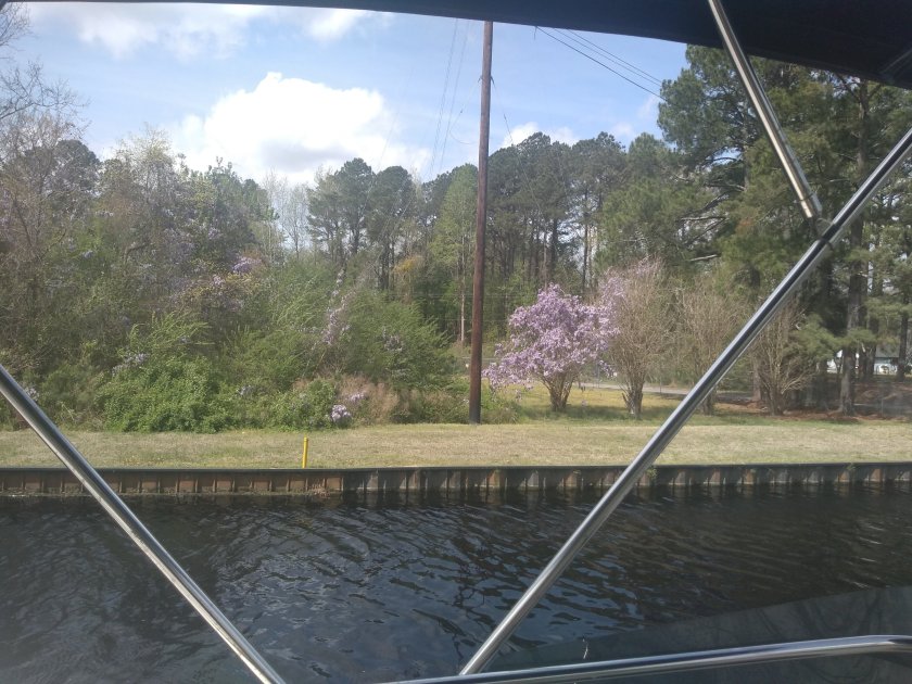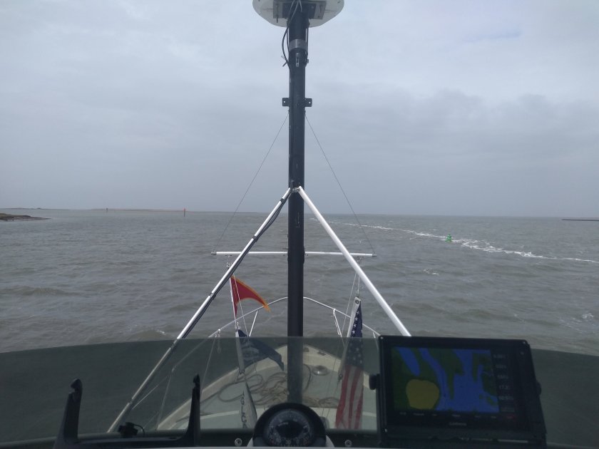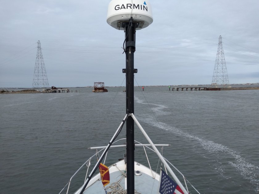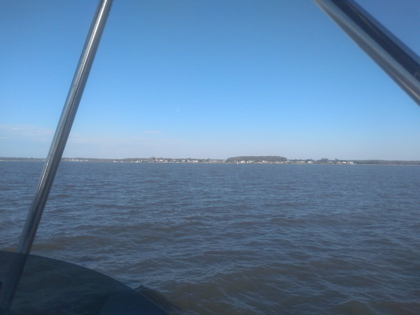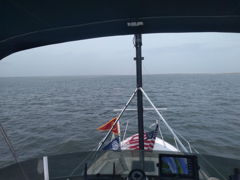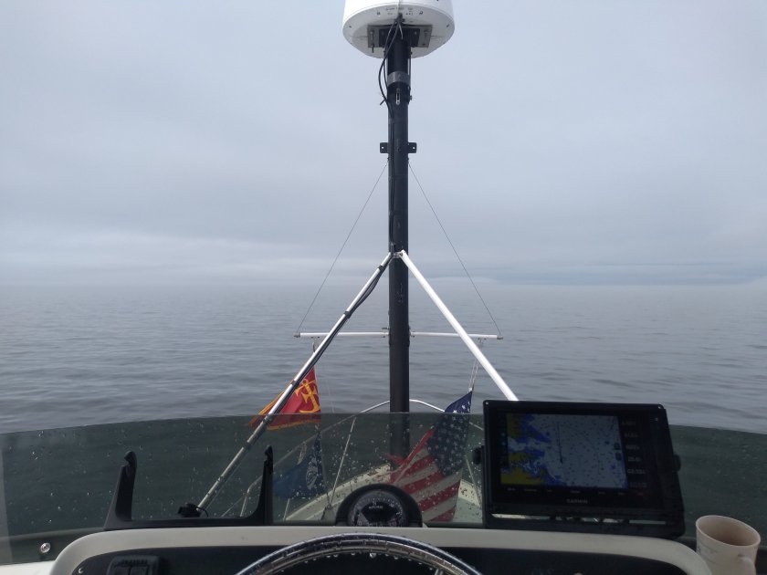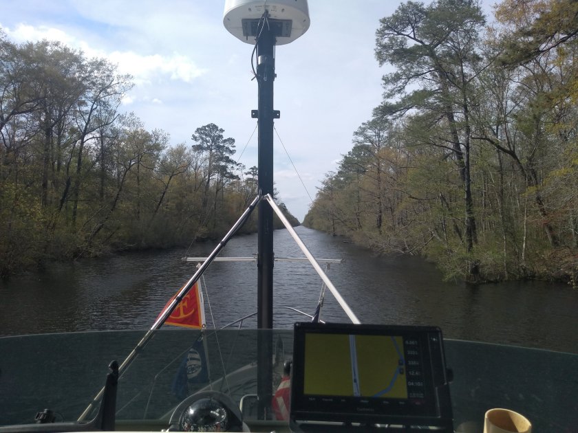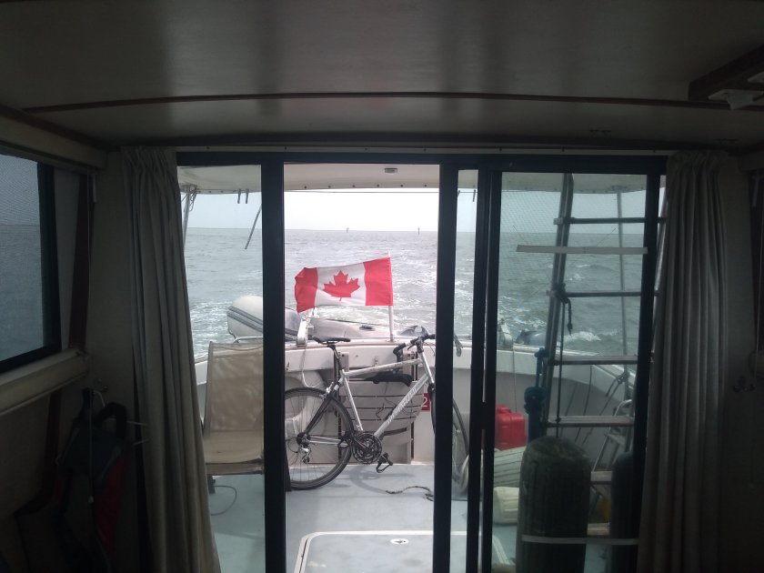 It was starting to rain as I stopped for the day near Peekskill. Right next to the nuclear power plant, in a little inlet off the river, here. About 5 feet of water, snug and protected.