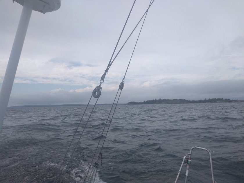 I slept in this morning and got underway about noon. Had a nice jib reach all day, traveled about 60 nm. Overcast and heavy rain for about an hour. It cleared up as I got into Little Current about 8:30.