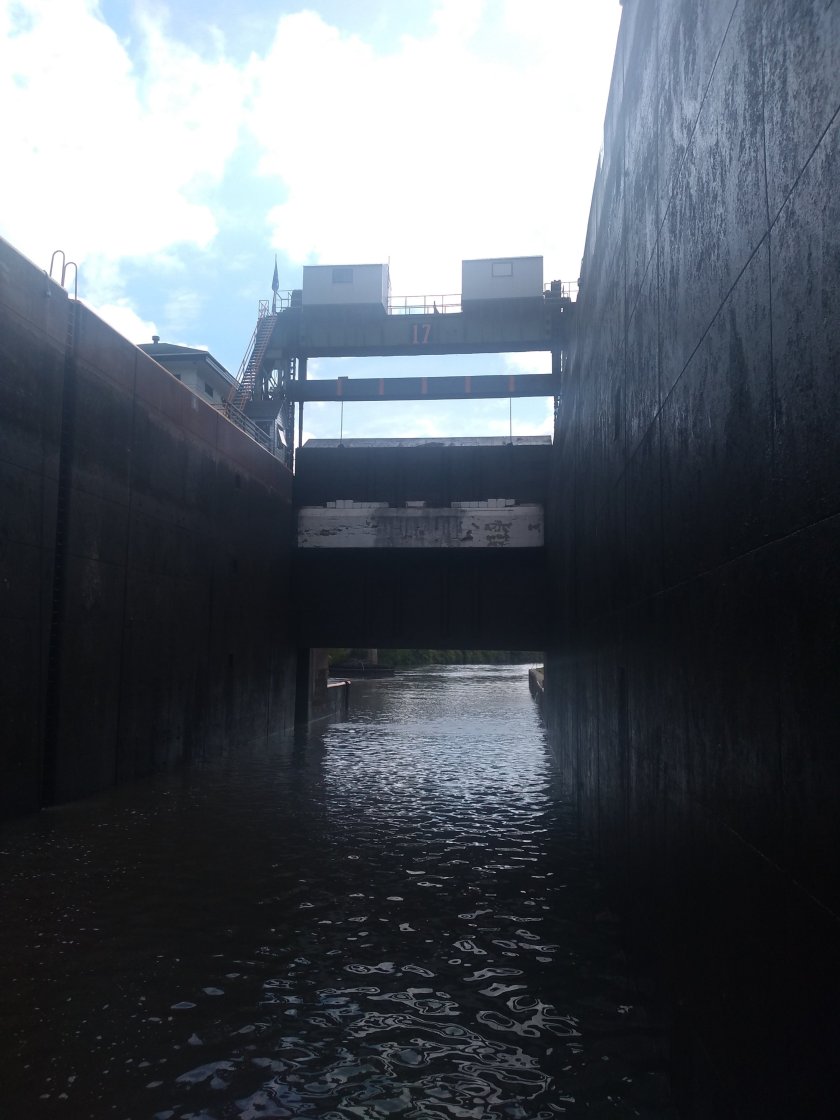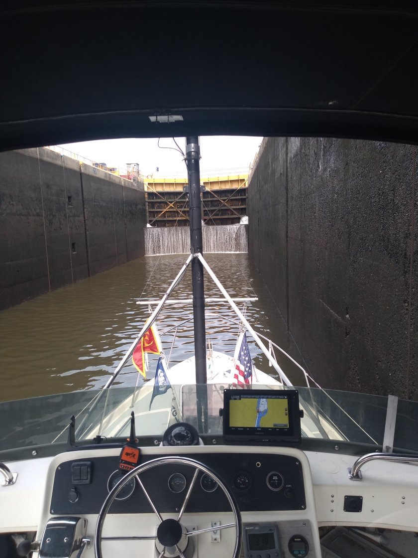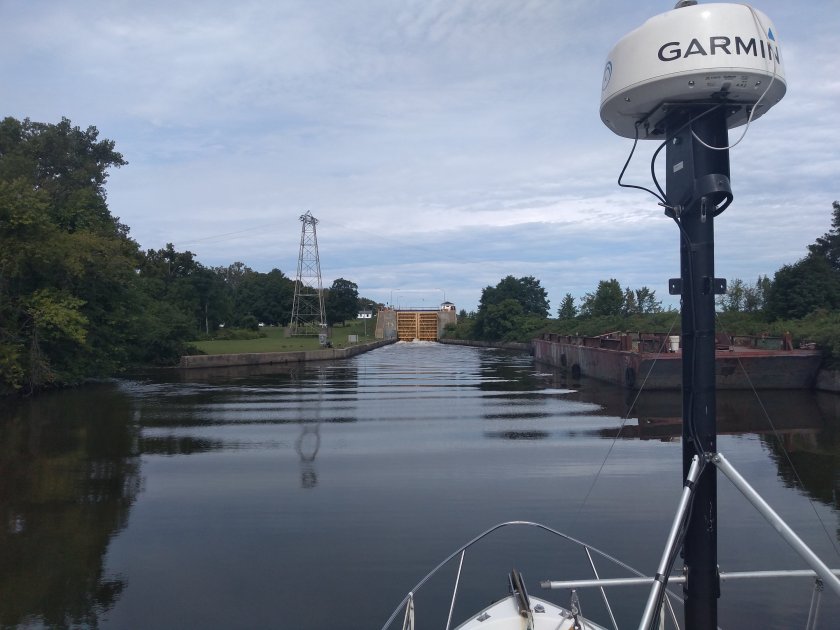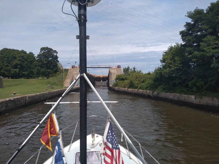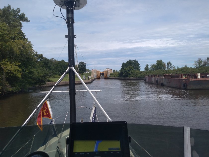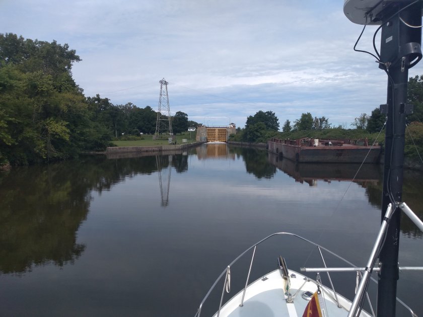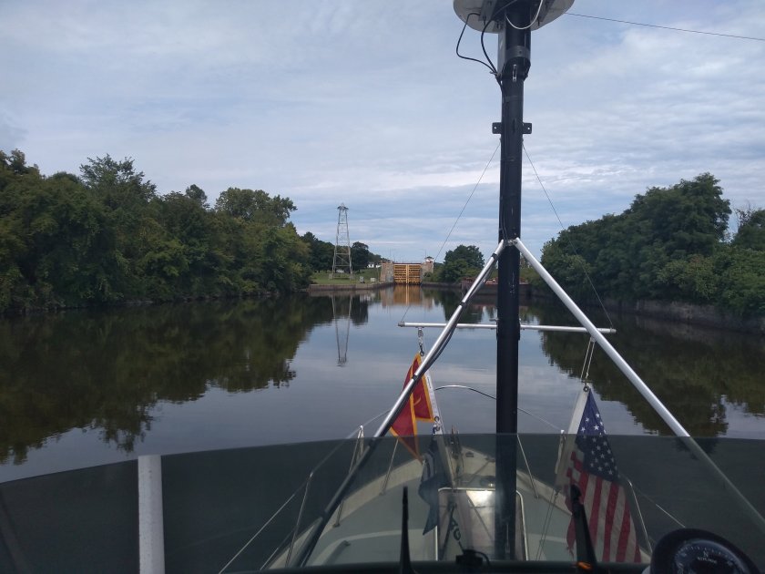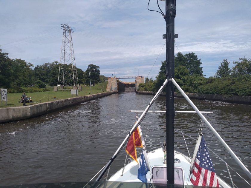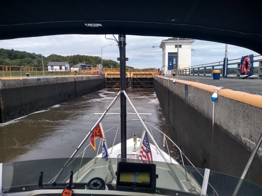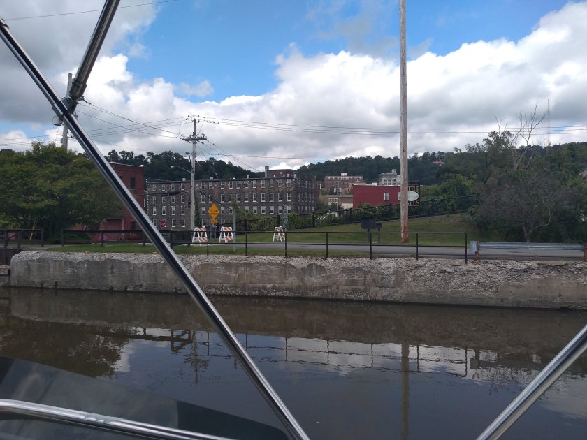 Yesterday I was underway from 0800 to 1700 with a brief lunch stop in Schenectady. Nice day, variable overcast and calm. I left Waterford and climbed through 10 locks, stopping for the night just above lock 11 in Amsterdam.
