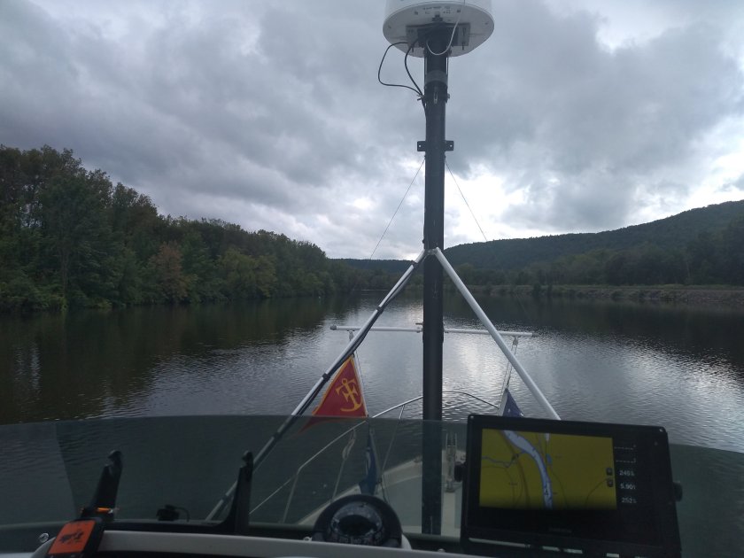 Yesterday I was underway from 0800 to 1700 with a brief lunch stop in Schenectady. Nice day, variable overcast and calm. I left Waterford and climbed through 10 locks, stopping for the night just above lock 11 in Amsterdam.