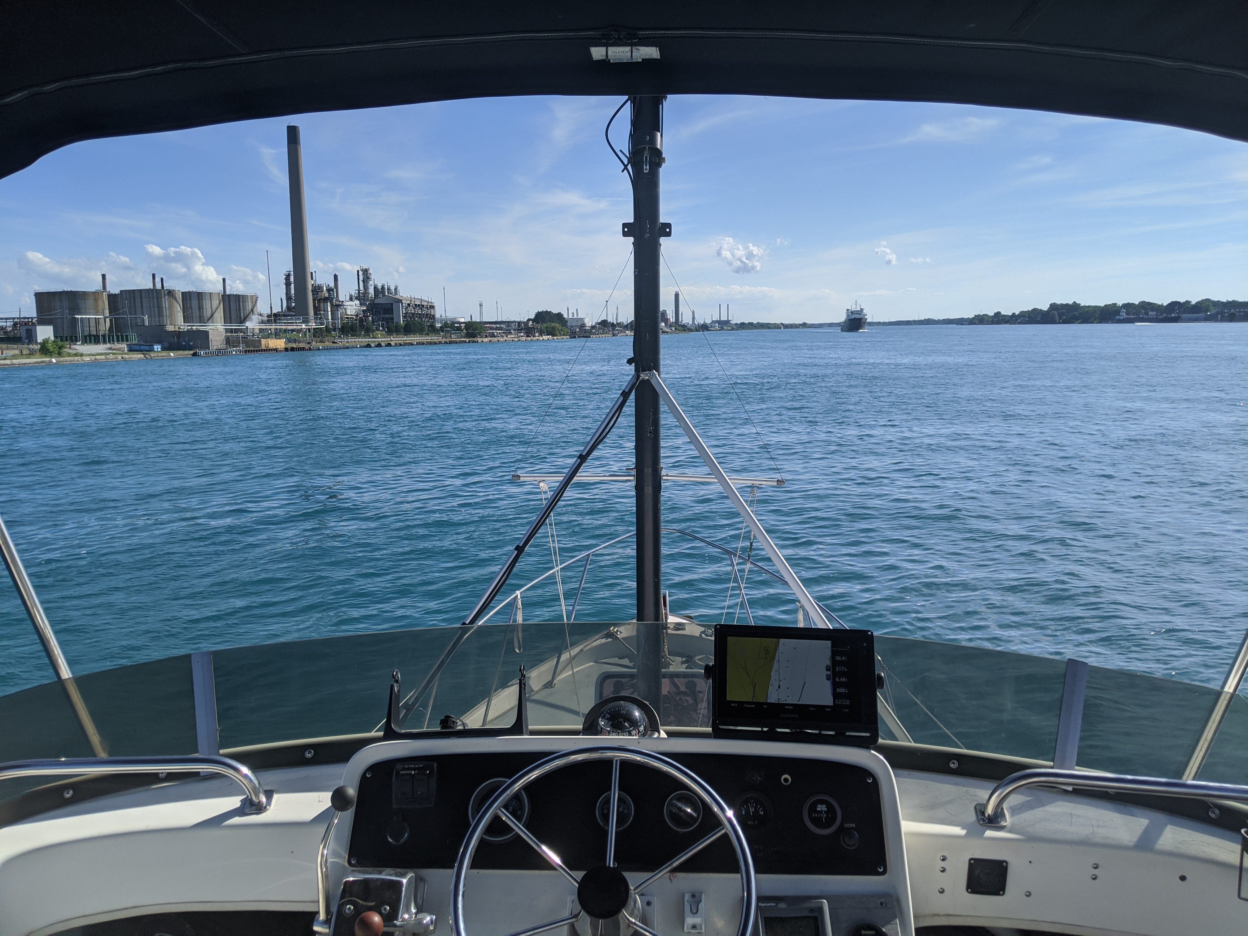 Today the weather broke, and after stopping briefly in Sarnia Bay for a late lunch it was off down the Detroit River.