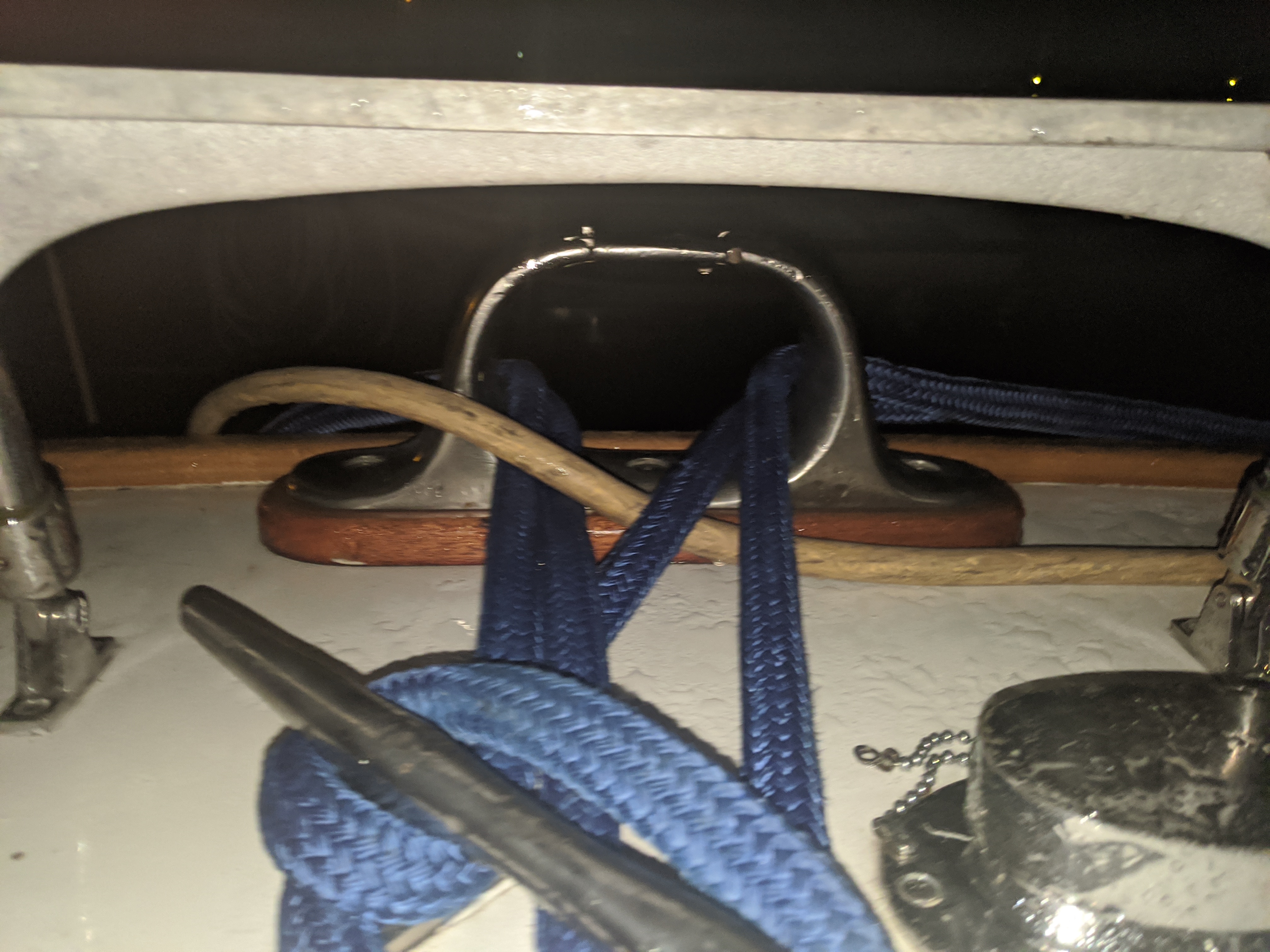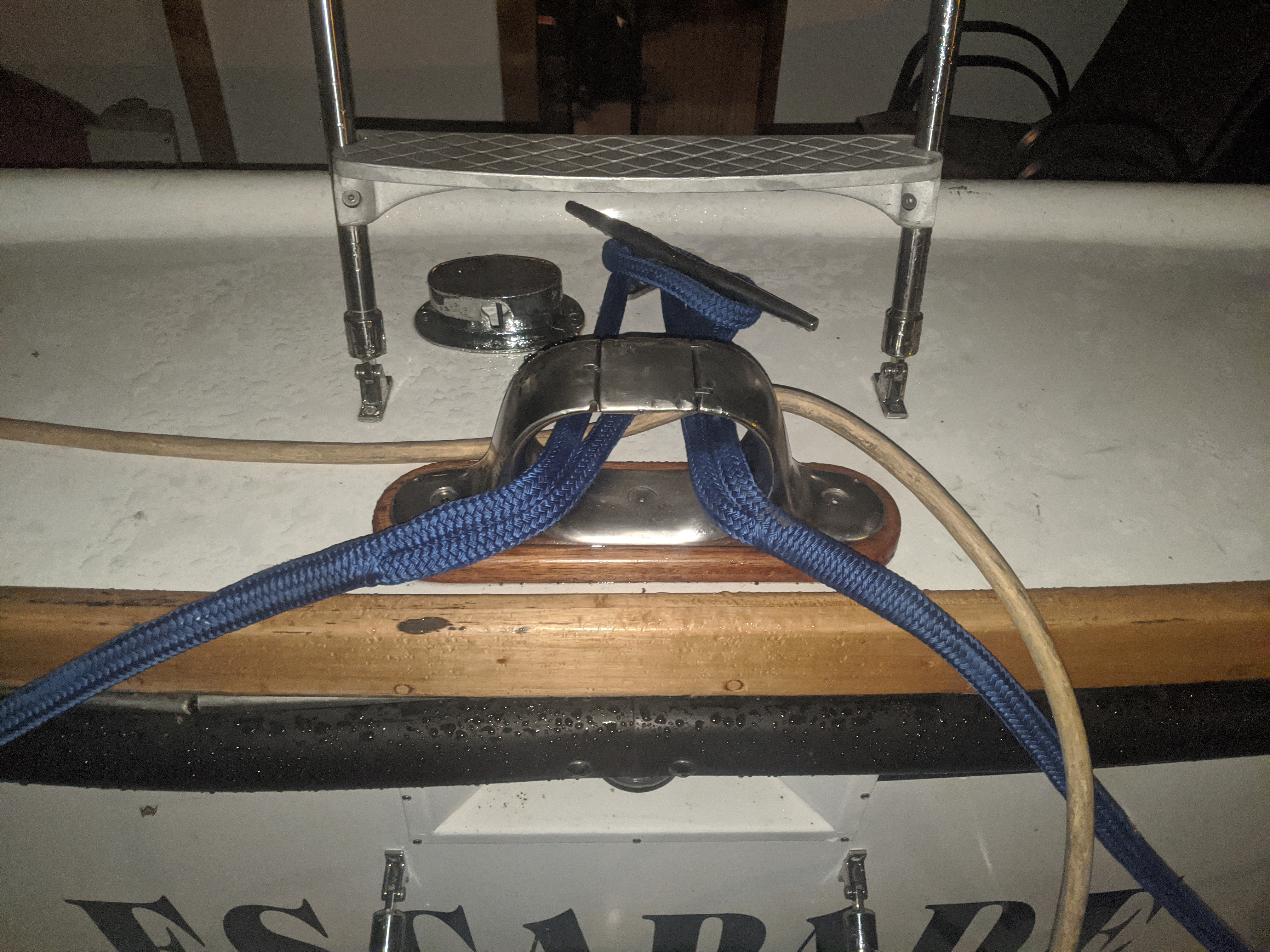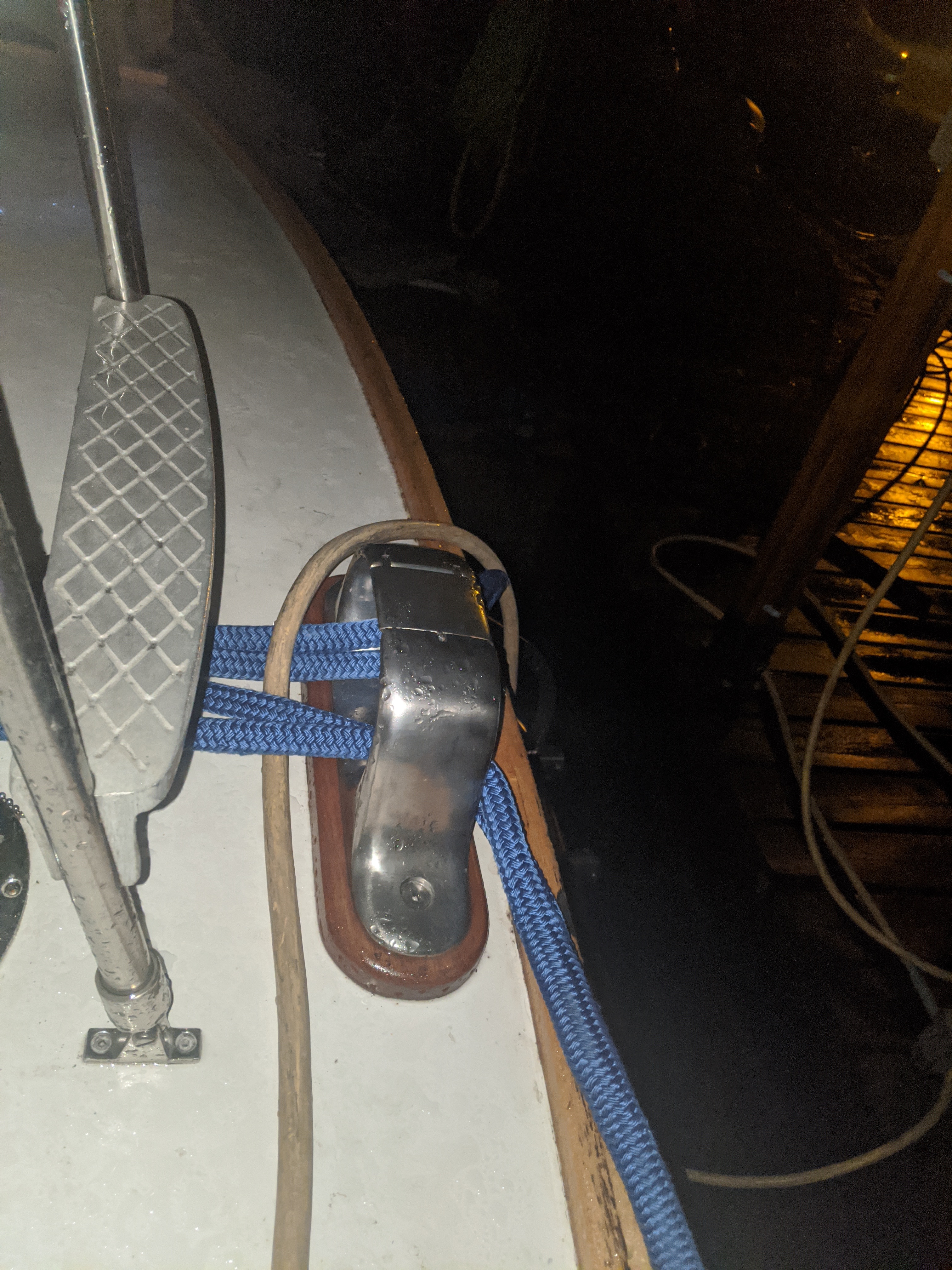 Here are some pics of my stern chock. The only one on the boat! I have to add more deck hardware to properly handle mooring and anchoring. Had dock line chafe issues last winter that I want to avoid this winter.