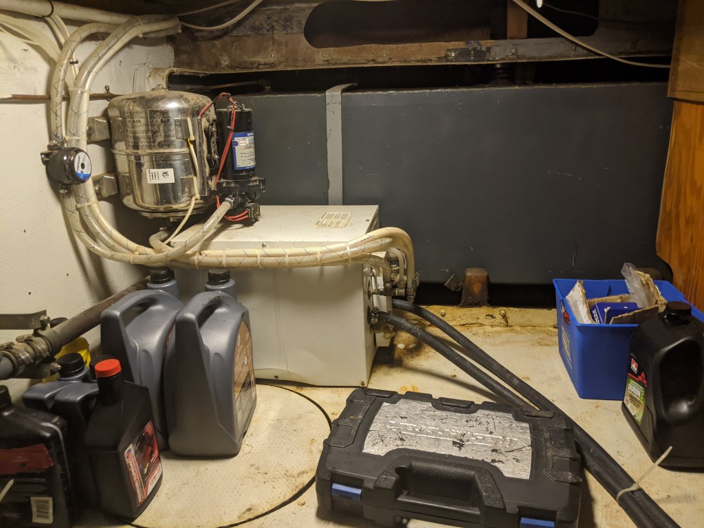 First, the heating system: I am getting a Hurricane Chinook diesel boiler, with thermostatically controlled fan heaters in the two cabins, head, pilothouse and salon. This will replace the existing water heater, and will mount in its place in the engine room. Lots of room and easy exhaust straight out.