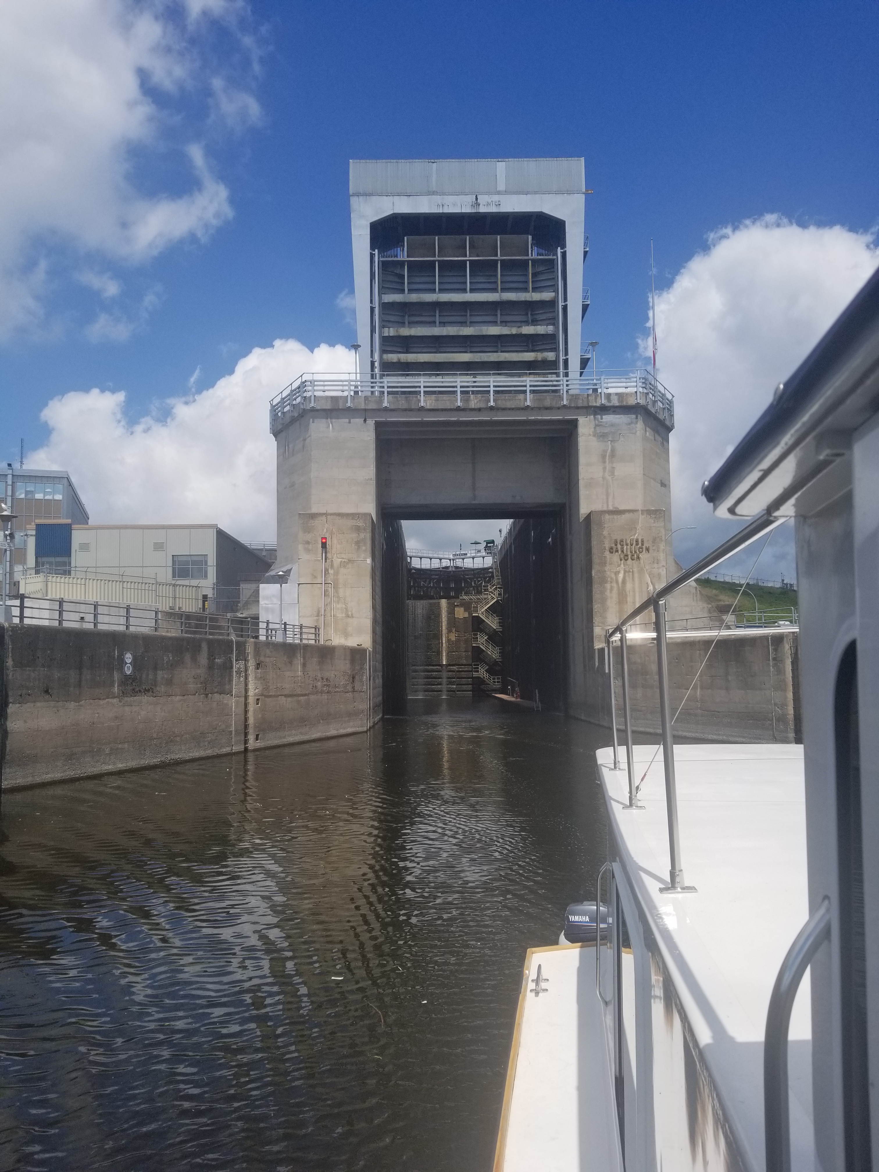 I arrived at the top of Sainte-Catherine Lock this evening and anchored here for the night. Samantha and Sarah are coming tomorrow for a short visit and we’ll go through two seaway locks to get to the port downtown, and stay at the bottom of the Lachine Canal for a day or two.