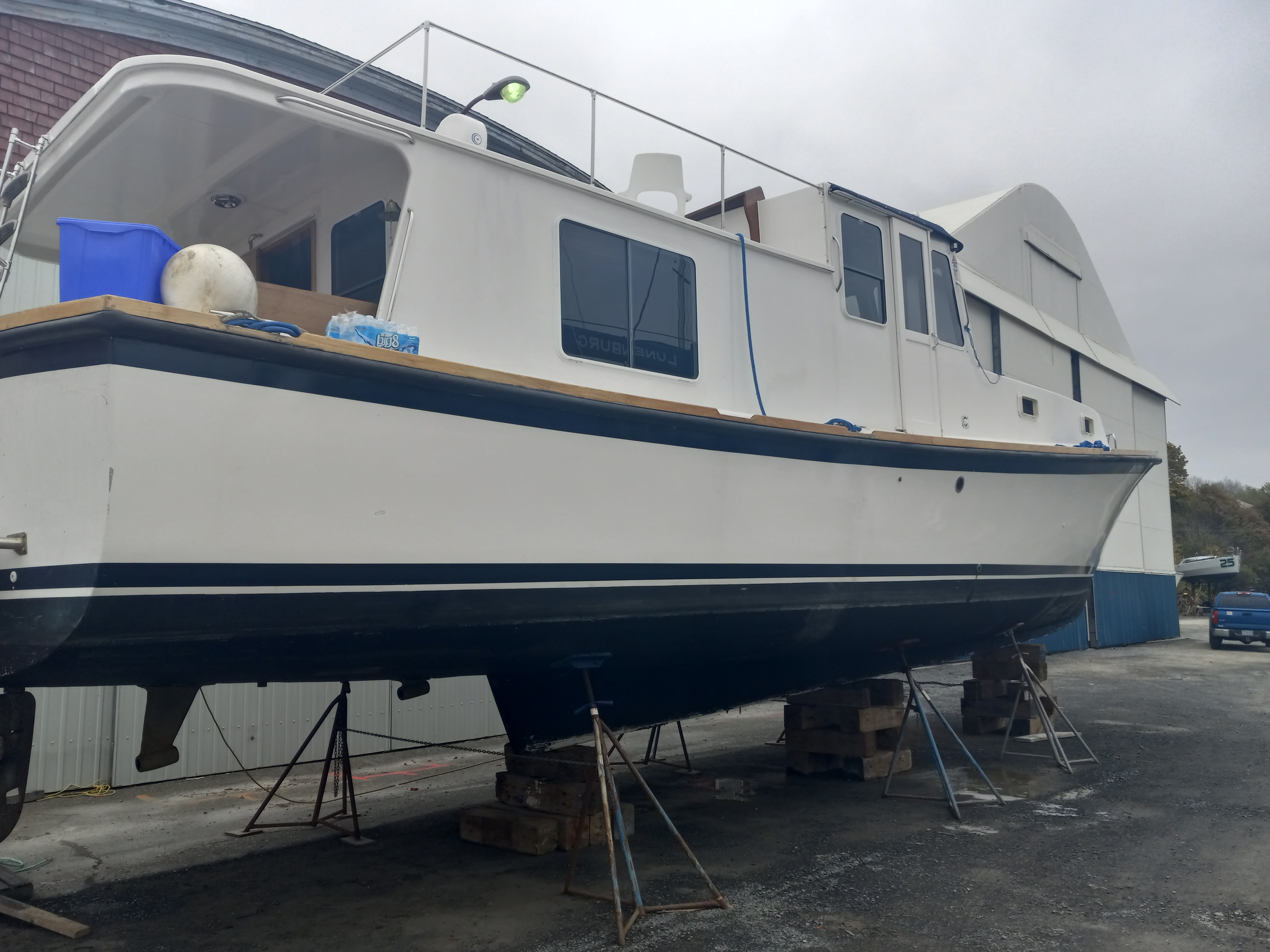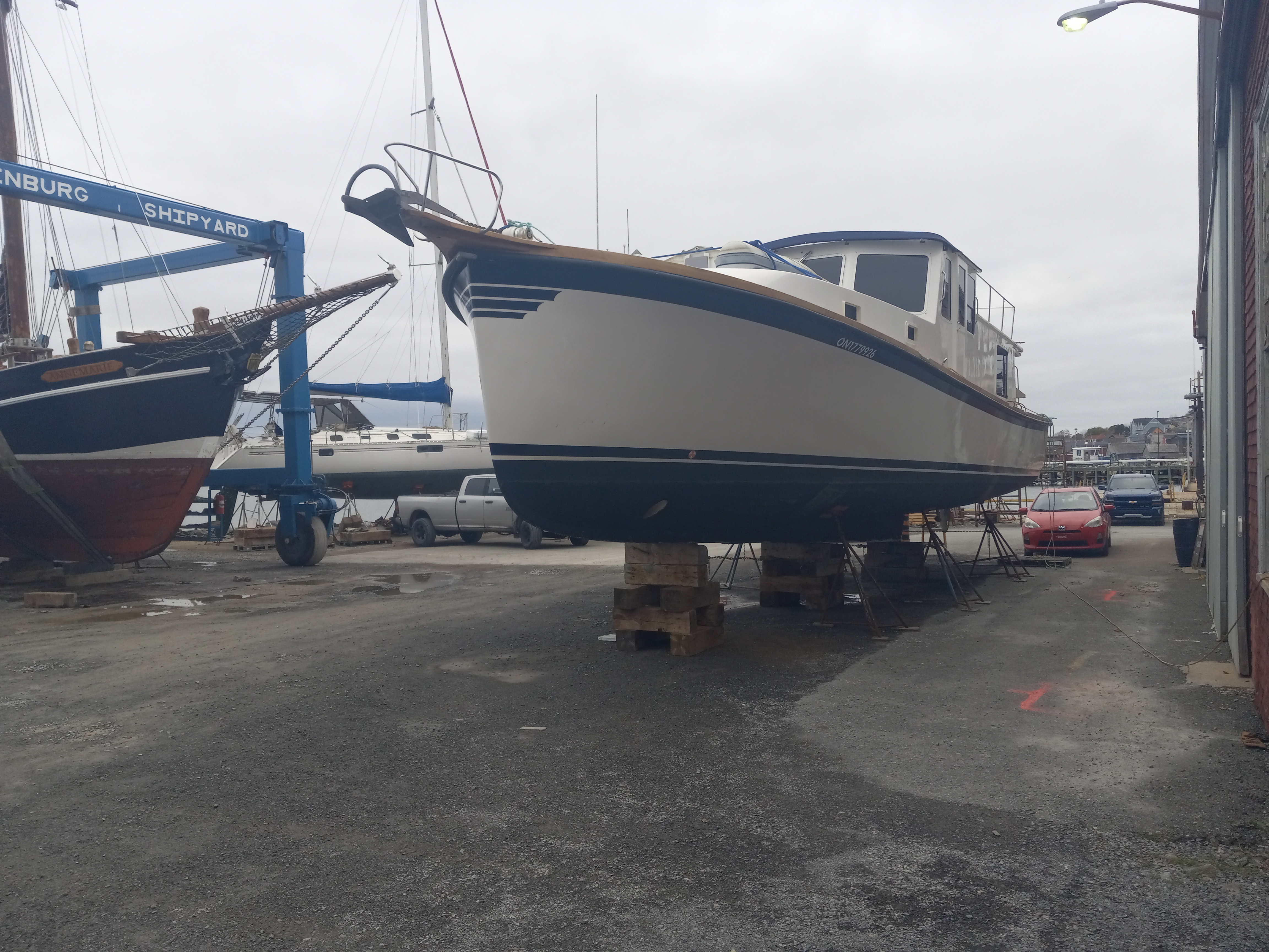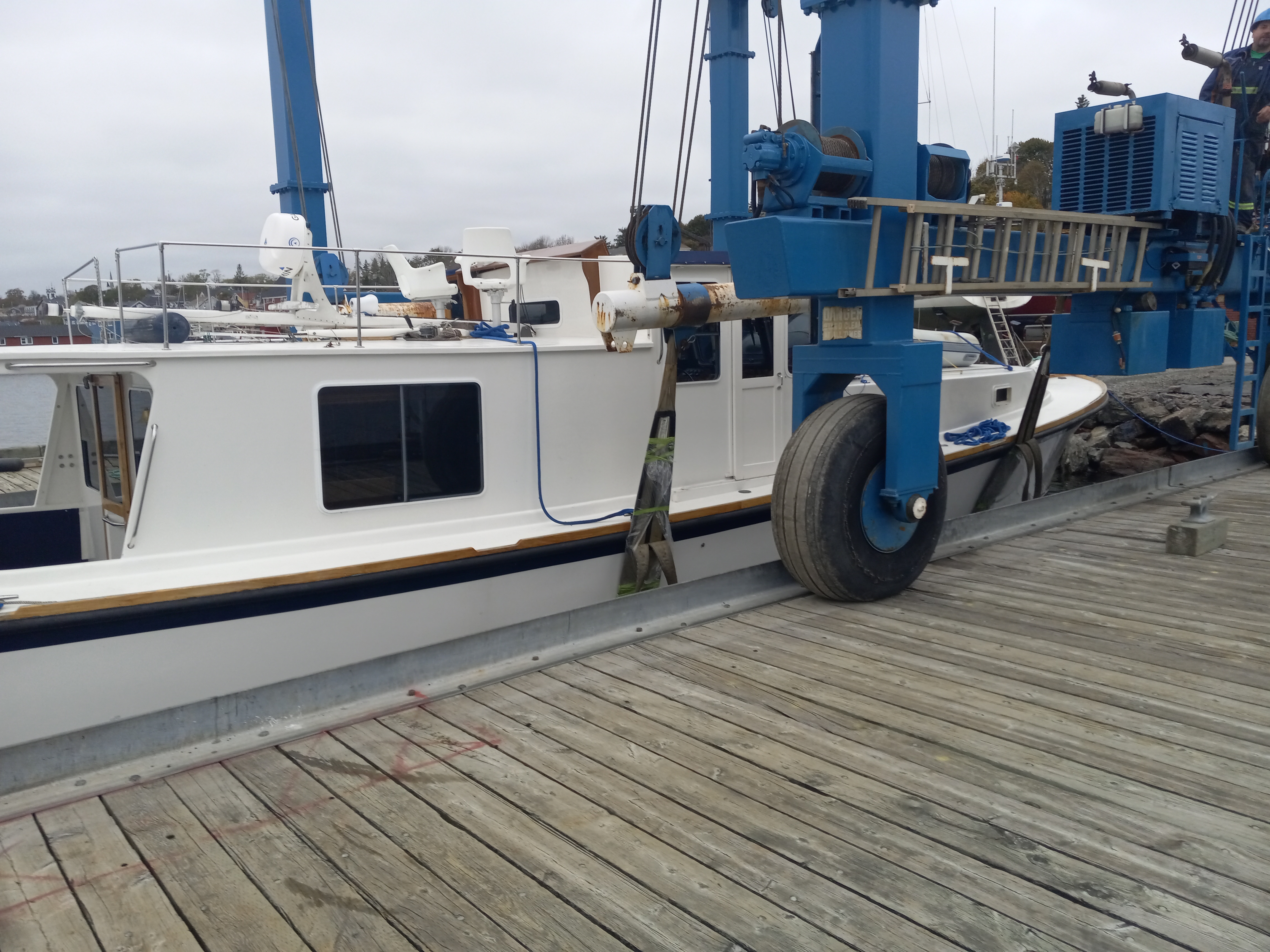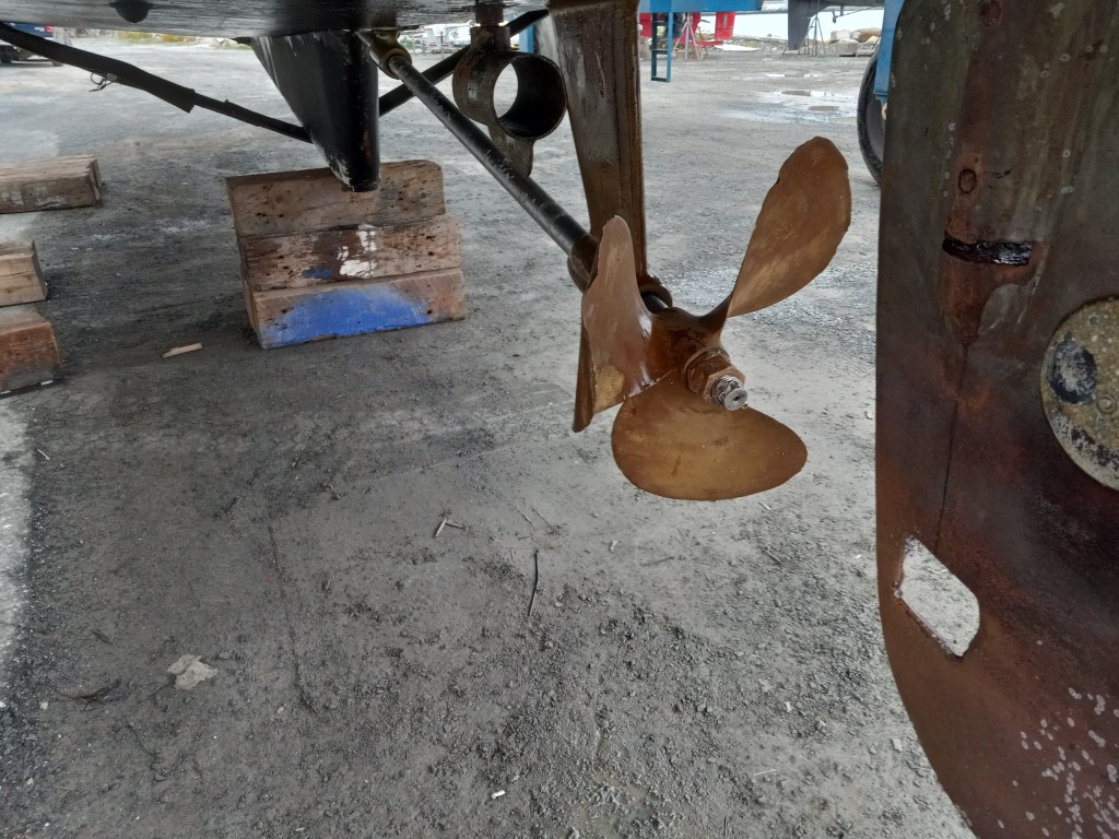 The damaged prop looks like new. We’ve agreed to depitch and reduce the diameter of the original prop and install it. It’s a nice Nibral 4 blade. They’re machining the new shaft. Planning to launch by the end of the week.