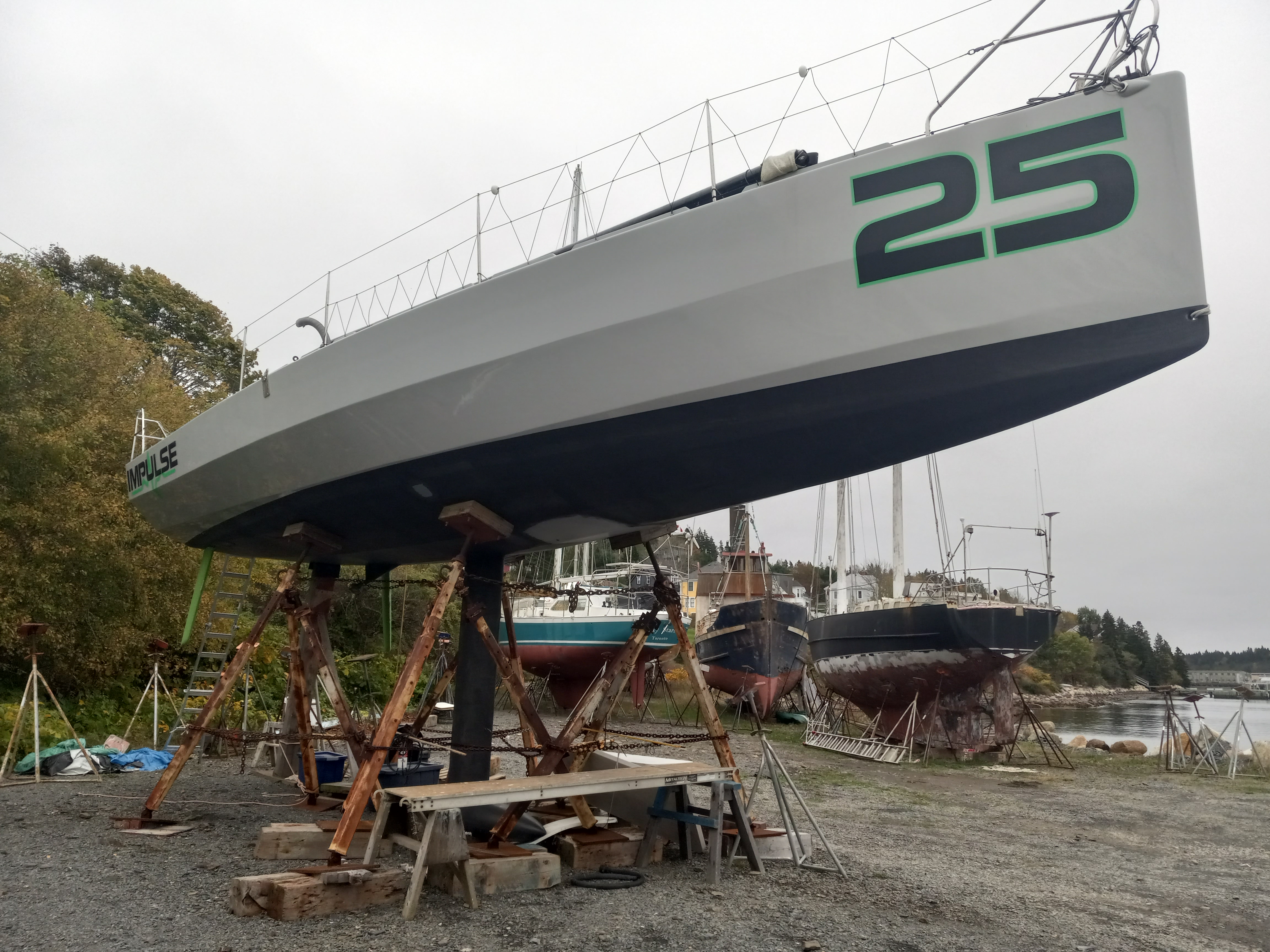 I’m quite happy here. Lots going on. I’ve met the owner of Impulse, the Class 40 here that I mentioned earlier. It’s not aluminum, but stitch and glue foam/wood/glass composite. Cool boat. Kyle is launching the boat and trying to get to Portland with the mast on deck. I offered my services as volunteer tow boat. Think it would be fine in favourable weather.