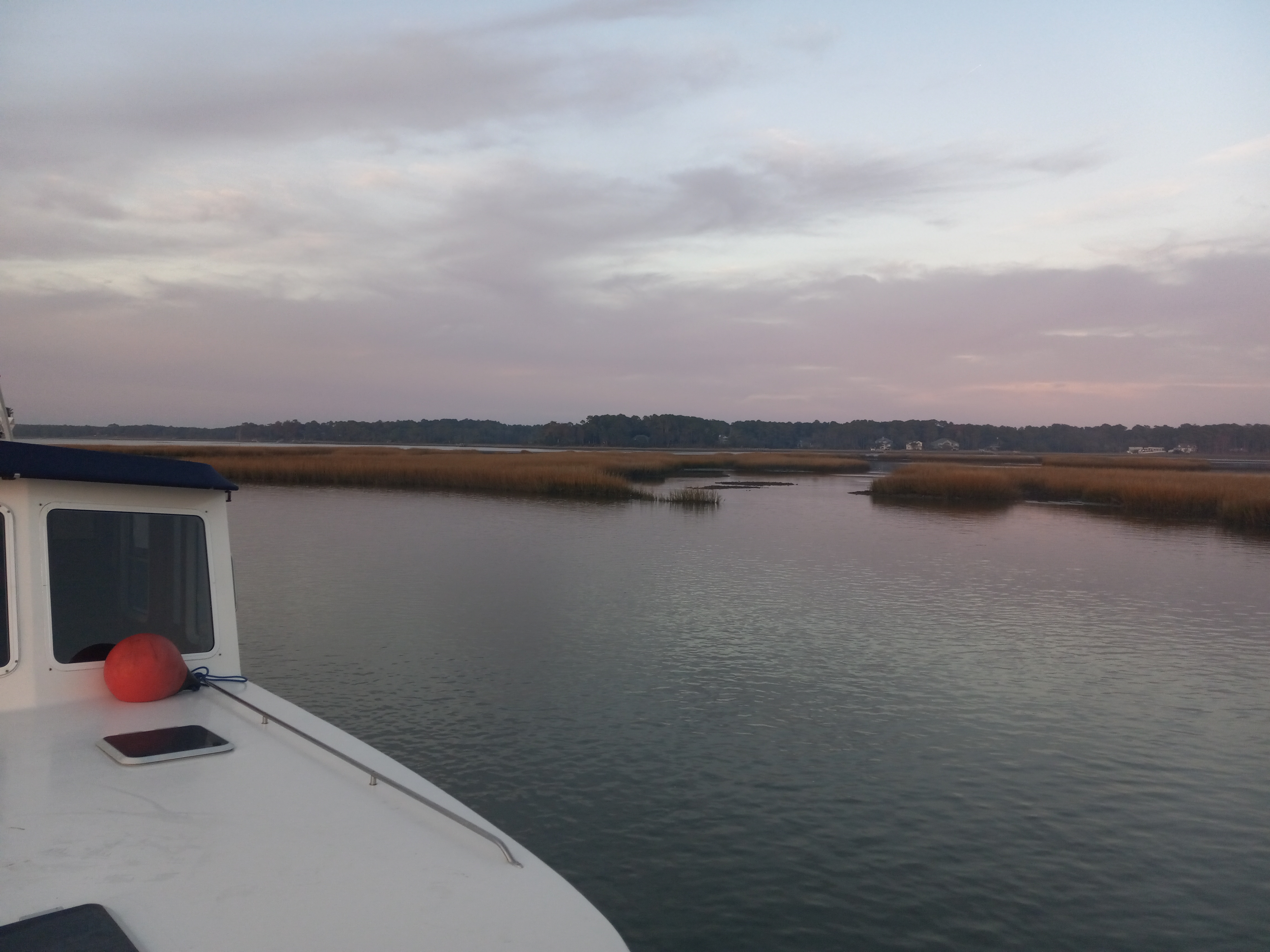 I was underway about an hour before dawn. Left the inlet in the dark, and ran about an hour to the Carolina Beach inlet, then the ICW cut over to the Cape Fear River.
