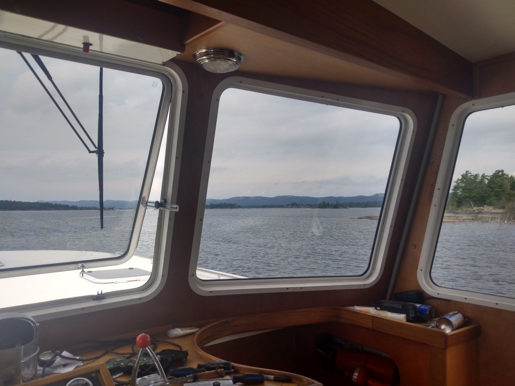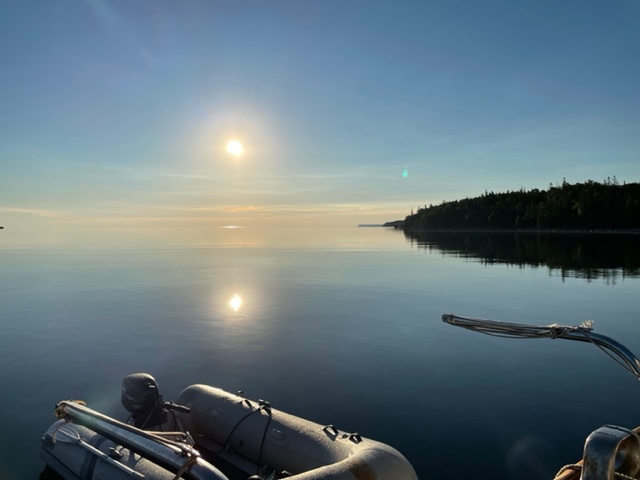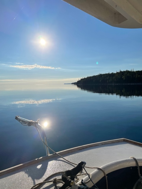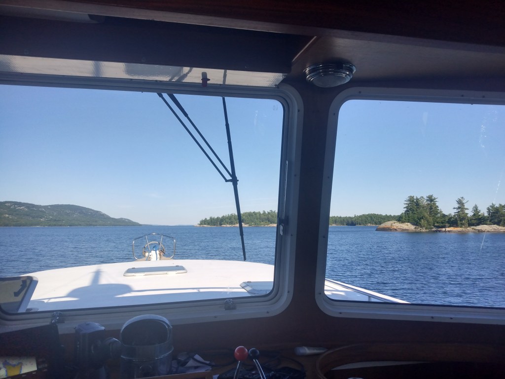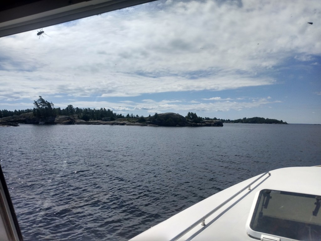 This morning I came around the east side of St Joseph’s Island and in to Bruce Mines, where I cleared customs and fueled up. I’m now anchored here just off the marina. Mallory picked me up this evening and we had dinner in The Soo and loaded up with groceries. Tomorrow I head east.