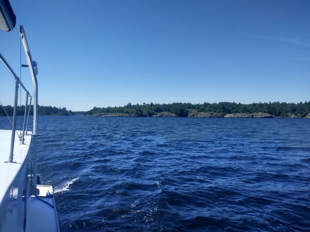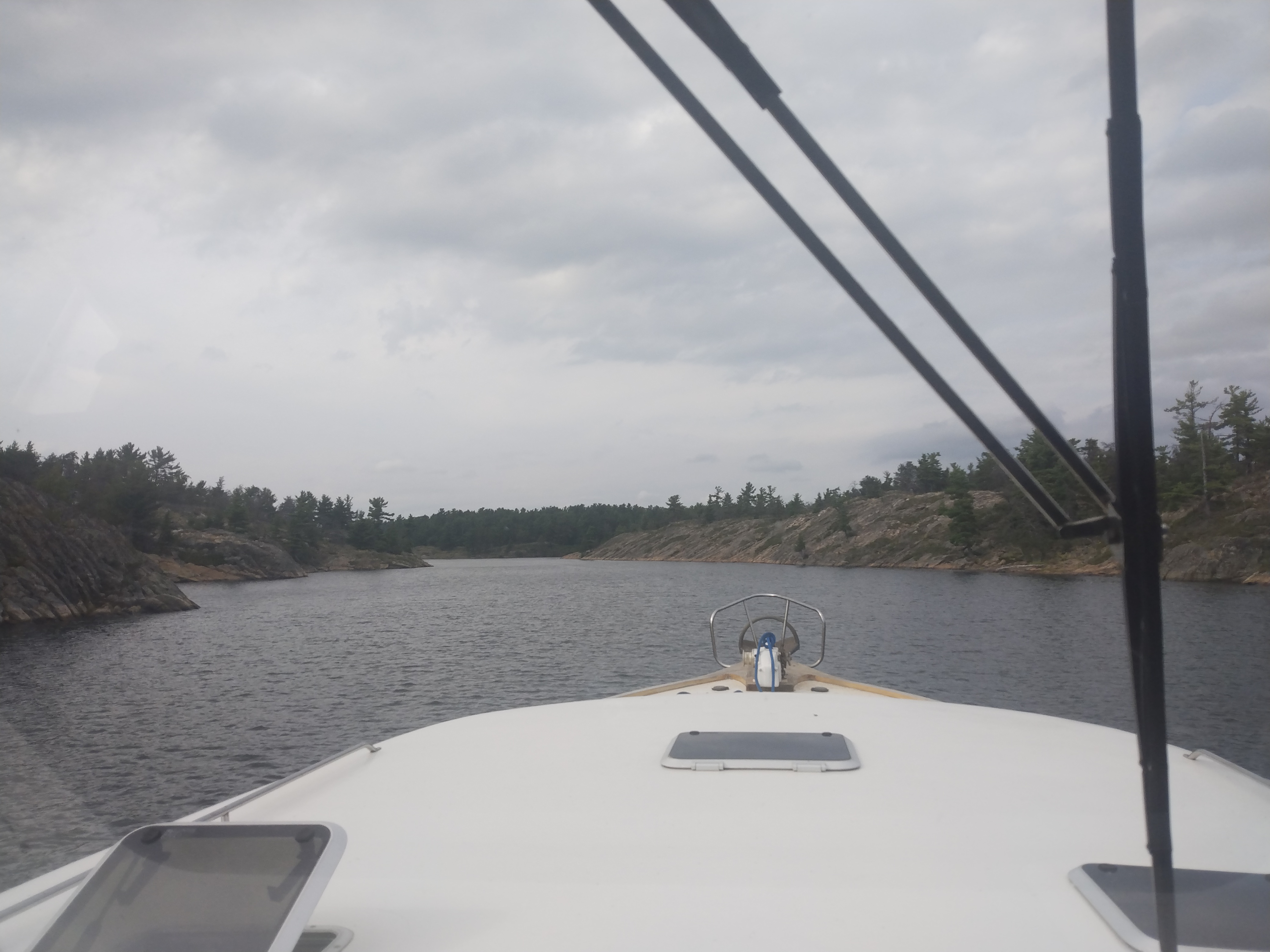 I’m now anchored here in Pointe au Baril. Last night was at Bad River, and the night before was in MacGregor Bay. The previous night was near Whitefish Falls.