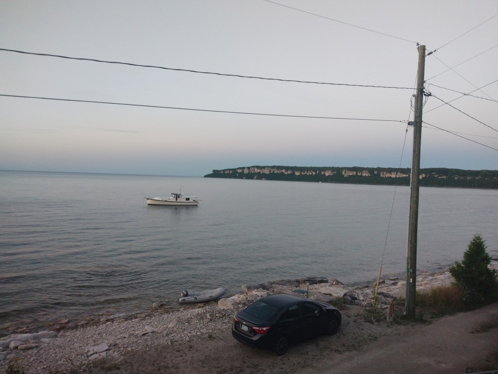 I’m in Wiarton. Yesterday I noodled down to a late lunch at Gillies in Snug Harbour, then headed across the Bay. Got in here after dark. Nice weather.