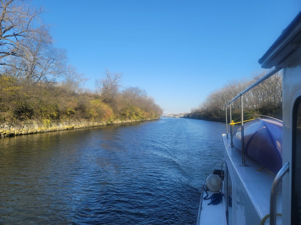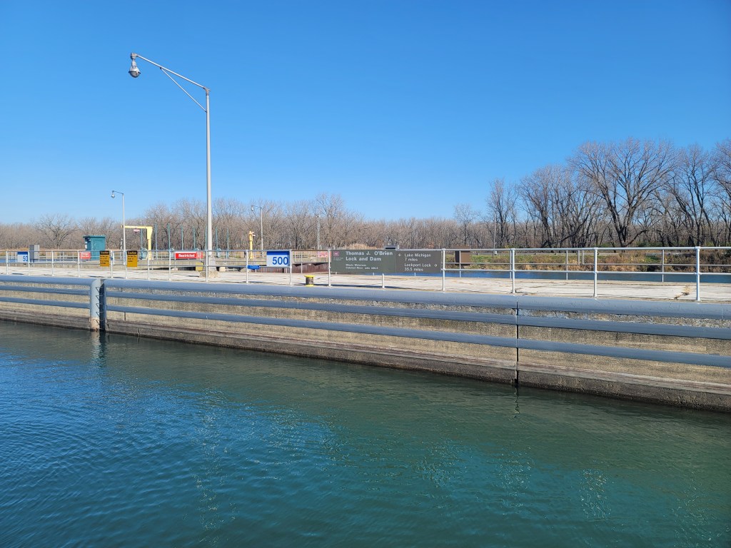 I’m underway, if slowly, on the Illinois River. I’ve been tied up at the Joliet Wall for the last day or so. Nice spot, and gorgeous weather.