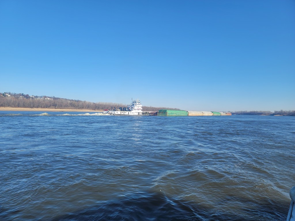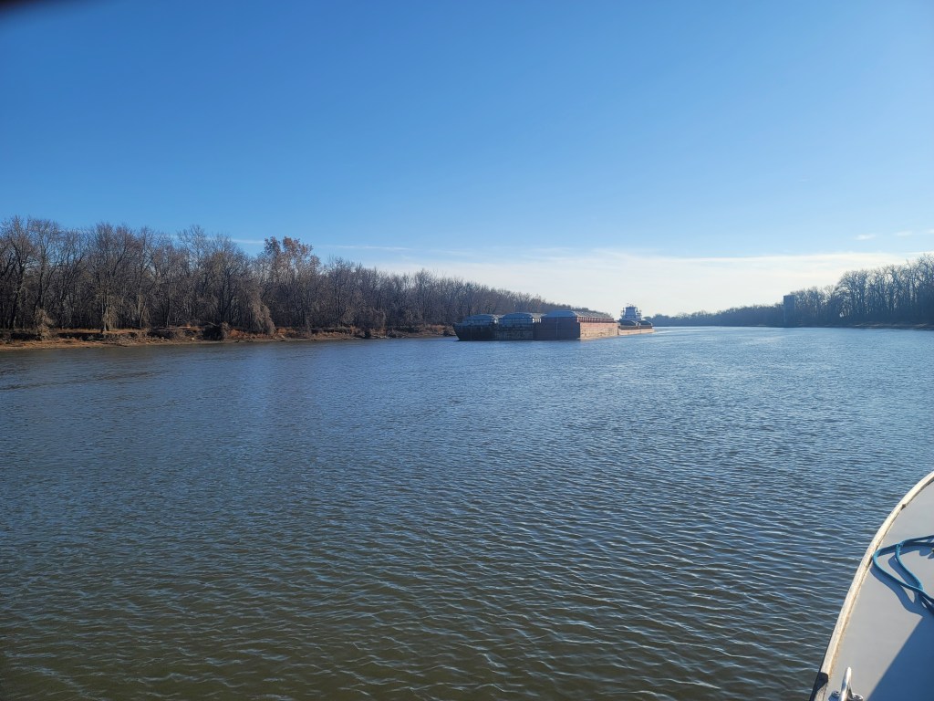 Tomorrow I’ll go through the Chain of Rocks lock, then off down the river. I expect my next stop to be Memphis, which is 410 miles downriver. Probably five days, maybe six.