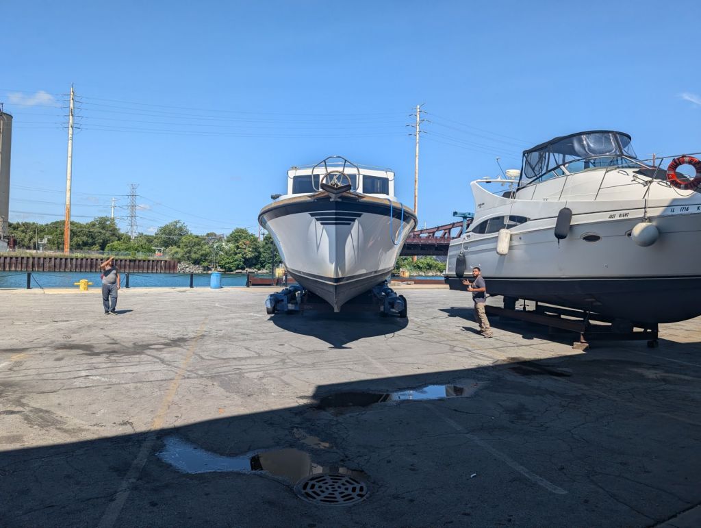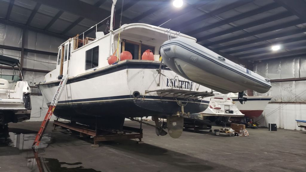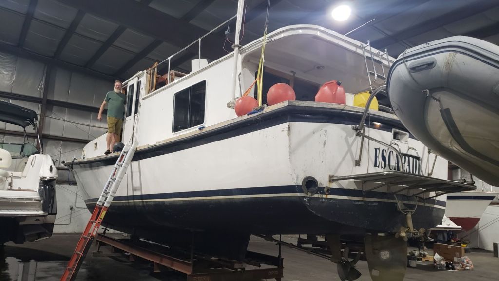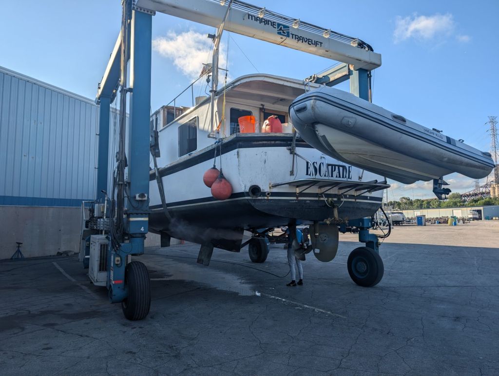 I left Escapade ashore at Crowley’s for a survey and some glass/paint repairs on deck.