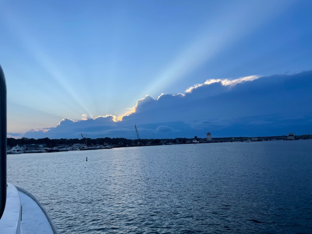 We watched 2 club races last night – courtesy of the Sturgeon Bay Thursday night sailing club – from a great vantage point at anchor.