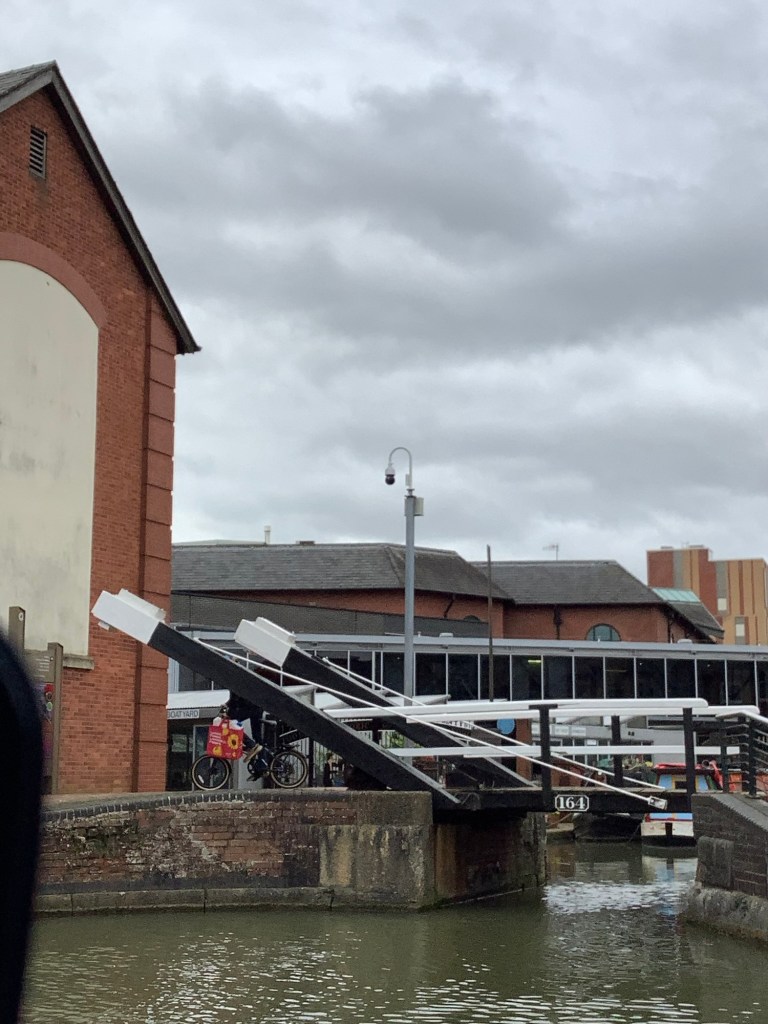 Mid-afternoon, we encountered a narrowboat heading south. Its captain conveyed through barely understood words and gesticulations that they had turned around because the passage away ahead was blocked by a ‘stuck’ canal boat. Needless to say, we blithely carried on, me silently wondering when and how we would turn around in the narrow waterway, with Jeff opining that perhaps we (he) could help the boat become unstuck. When we encountered the boat a few minutes later. Jeff, with the help of a man biking along the canal, quickly realized that it was unoccupied, and that its position was likely the result of a failed stern line. With some careful maneuvering, they managed to reposition the boat so that the canal was clear. It probably took less than 10 minutes, and as usual, Jeff provided a simple, highly effective solution to a fairly pressing problem.