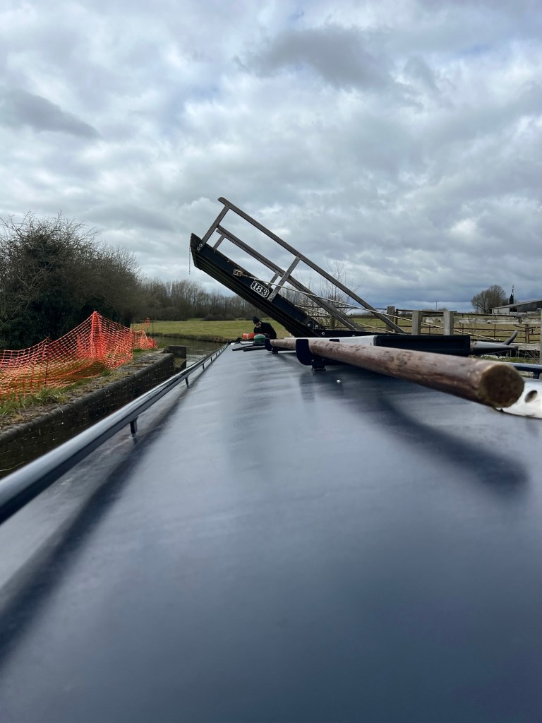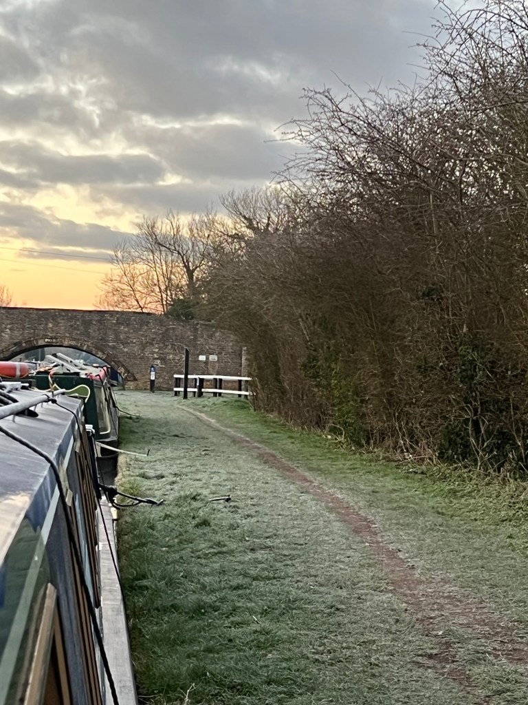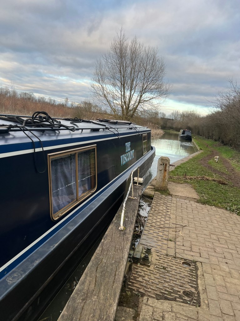 Good thing I bought this toque before we left Heyford. Jeff didn’t bring a warm hat 🙂Repositioning the abandoned boatThe canal is passable again Spectacular sunrise as we flew to HeathrowPaddington station Heyford, where we picked up the Viscount. Let the adventures begin!John walked Jeff through the boat and came with us for a short time, through a couple of bridgesNo room for error within the lock