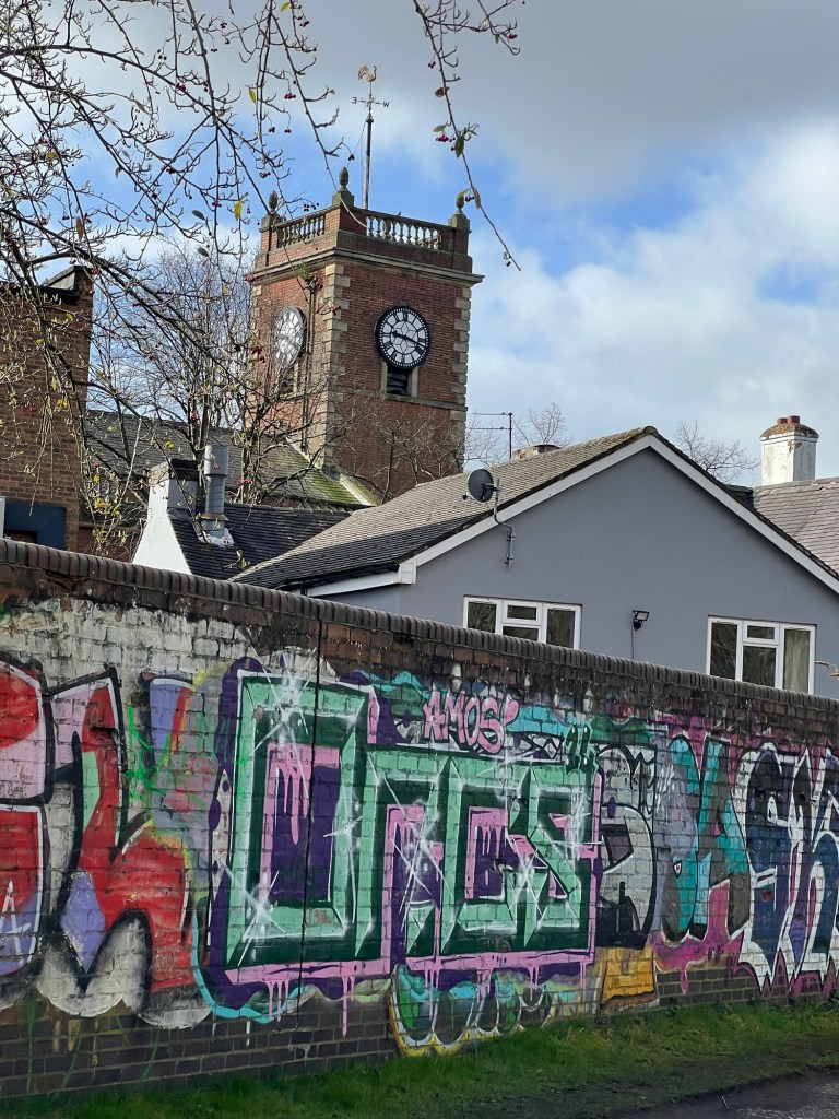 Along the way we stoppped near Bridge 177 to have lunch aboard the boat. After lunch, Mallory and I attempted to walk to Kings Sutton, a nearby village. I say attempted because the walk was extremely difficult on a busy road with no shoulder, We (I) gave up very quickly,; I was somewhat concerned about our safety given my limitations and risk of falls. It was this failure to visit Kings Sutton that led us to walk from the wharf to the town of Aynho. It was tough, a mix of walking on the (scary) street and on a “path” that was quite filled with brambles and overgrown. We made it, though, only to find the village was bereft of any rests or cafes. We admired some lovely properties including the “big house” before making the trek back to the wharf.