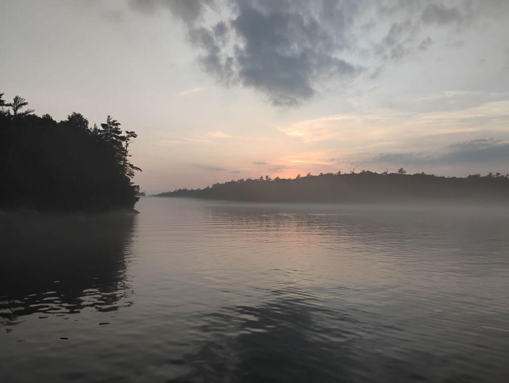 I’ve been reminded again of how much I like this area. On Sunday I came across a calm and foggy lake and went down Twelve Mile Bay. Monday I traveled the inside route down and came through the first lock in the late afternoon.