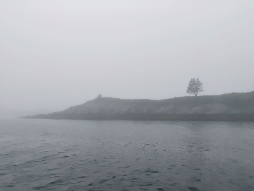 Yesterday was a lot of fun. I upped anchor and headed in as soon as the current went slack. In hindsight it probably would have been sensible to wait for the water to come up a bit, but I had assumed that there would be a river channel visible at low tide. Not really. I ended up grounding a couple of times trying to get into the Bay. No big deal, as the tide was rising by something like 5 ft/hr.