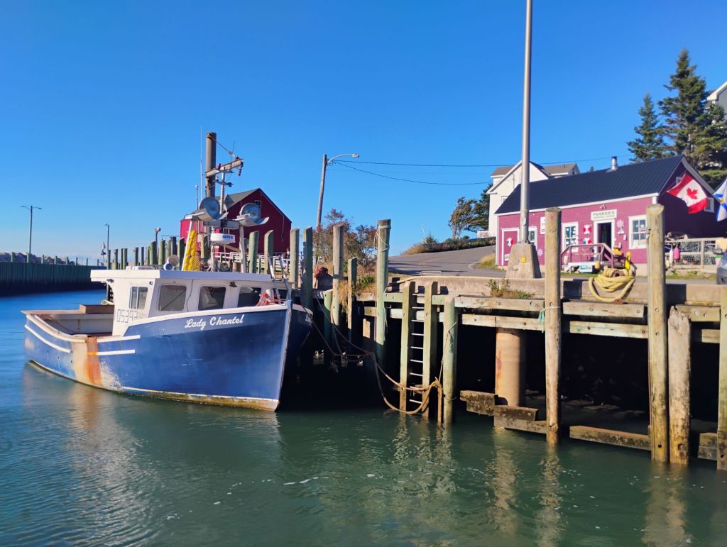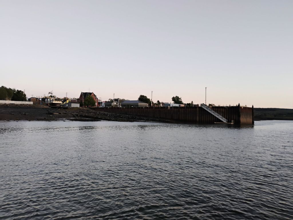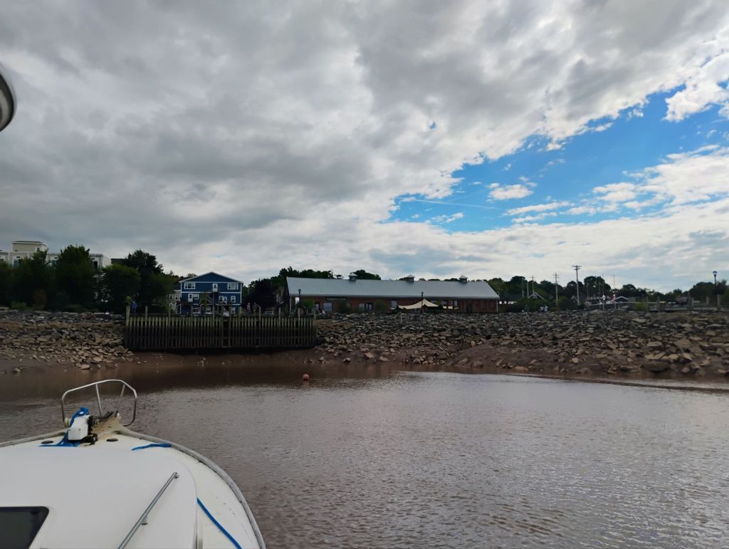 When I got to Wolfville the entrance channel had ten feet of depth, so I followed it in to the town. That was delightful. I anchored in the basin and dinghied into the dock for a meal out and groceries.