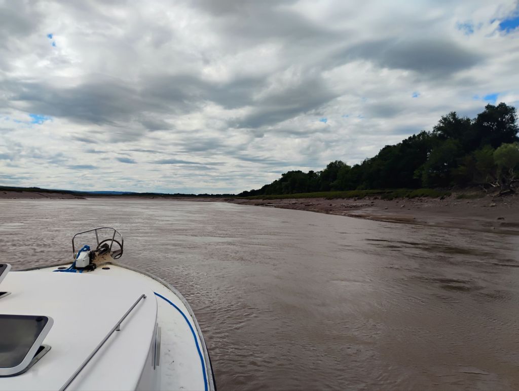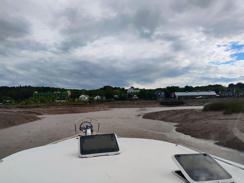 I’m anchored here as I write this, waiting for the tide to change. Today I’m heading into the basin, with a plan to anchor in Maitland for a day or two to explore the Salmon and Shubenacadie rivers.