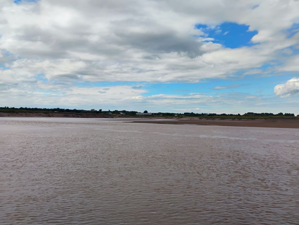 From Wolfville I came out and around to the Avon River, and anchored here last night. This morning I was up early and went for a tour almost up to Windsor, then back out on a falling tide. Not much to see.