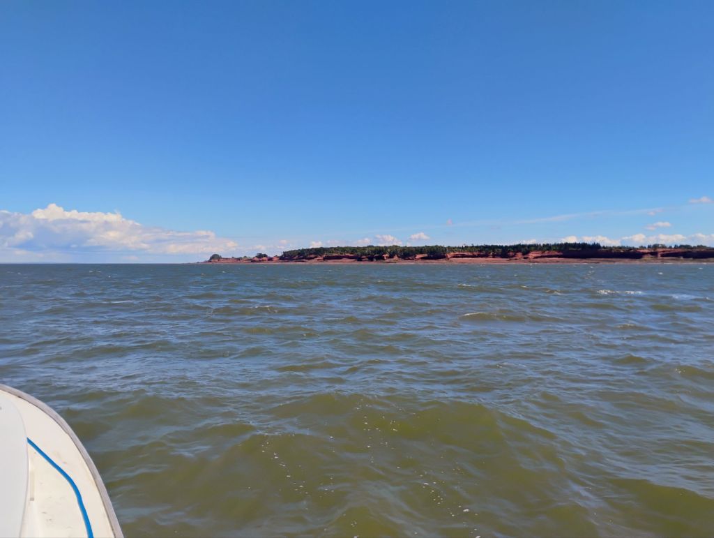 Yesterday was a nice trip. Bit of everything – sun, fog, and a tide change in themiddle of the Bay that finally put some salt on the windshield. I left Parsborro just after high tide and arrived here about 2 hours after low tide.