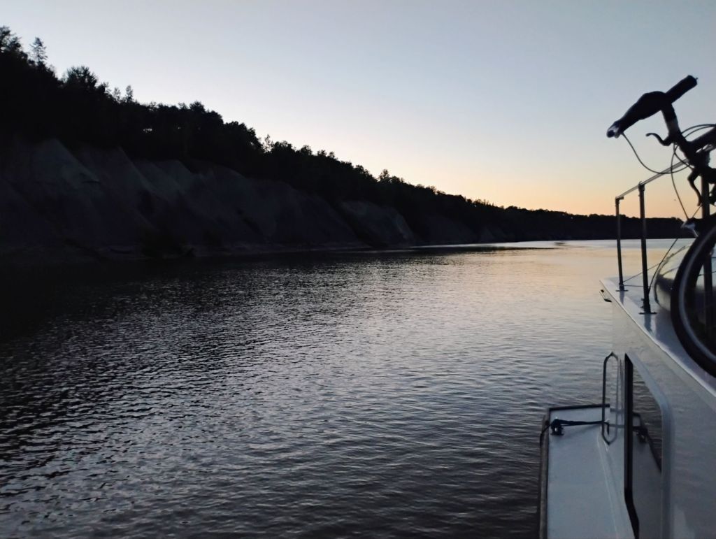 I’m now relaxed and enjoying the surroundings. It’s beautiful here. No sights or sounds of people apart from rafters and kayakers. They’ve all stopped to say they’ve never seen a big boat on the river.