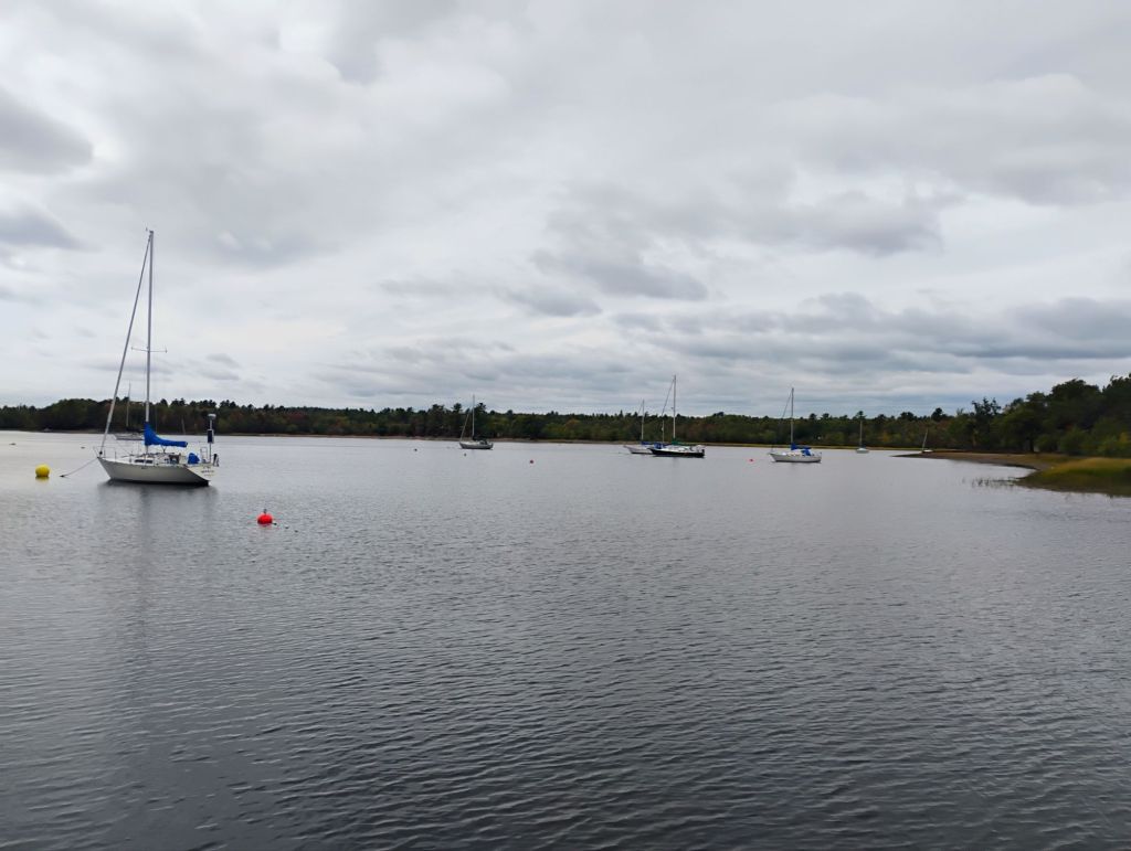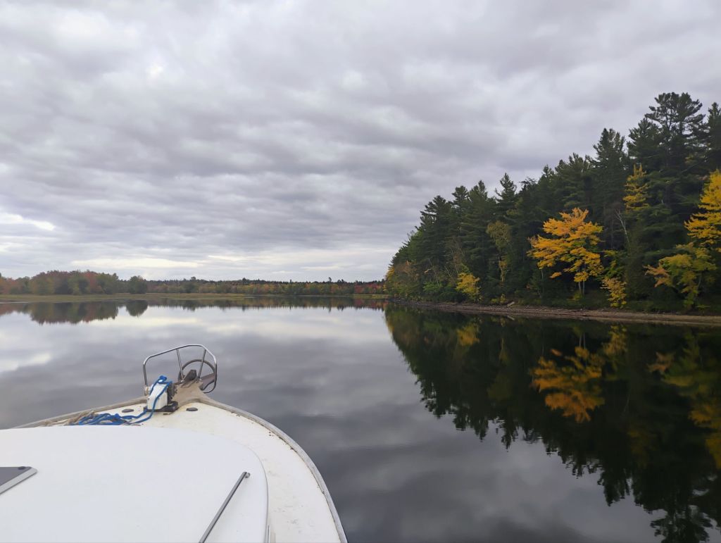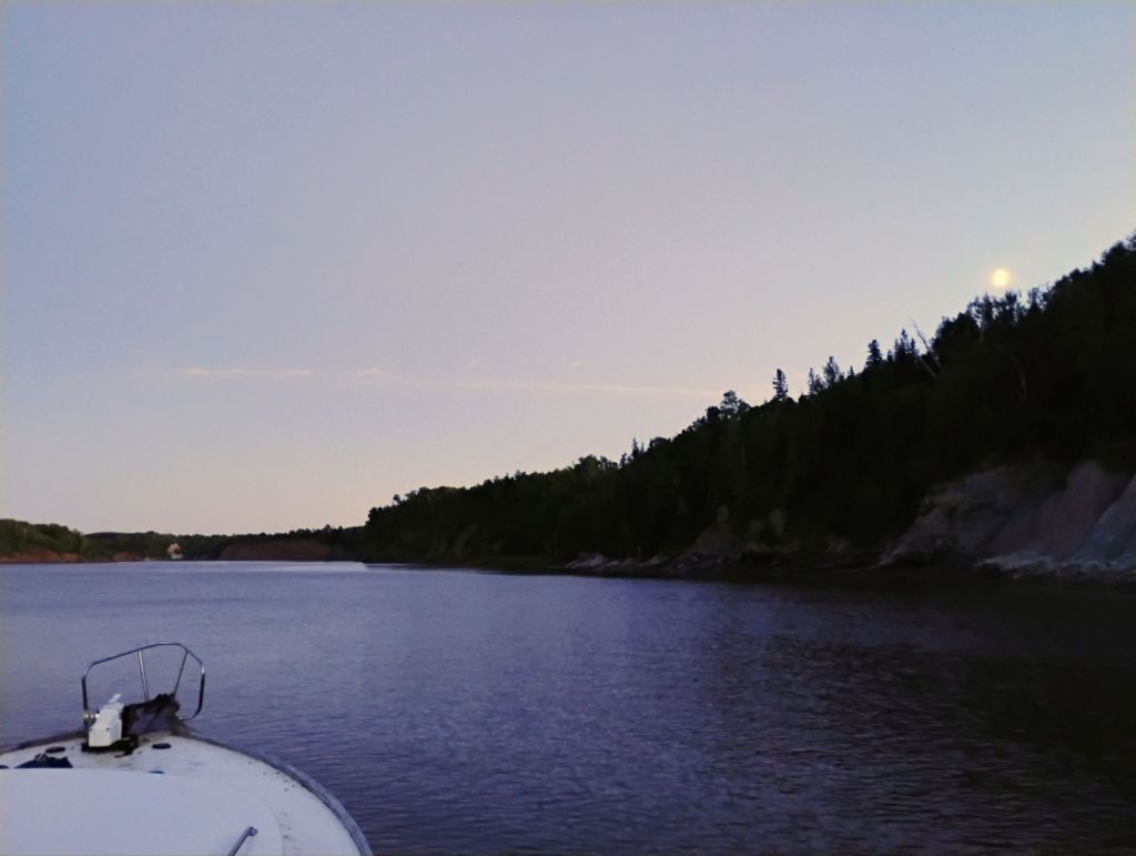 I took the dinghy for a spin briefly. Tomorrow morning I’ll go in on the tide to Stewiacke and Shubenacadie in the dinghy.