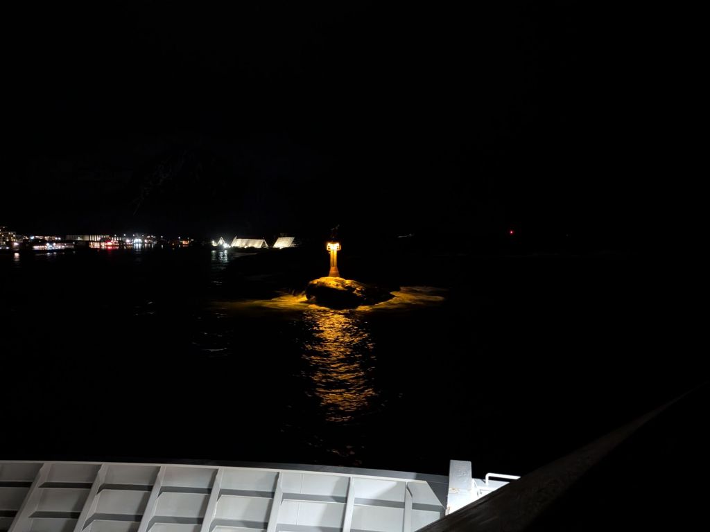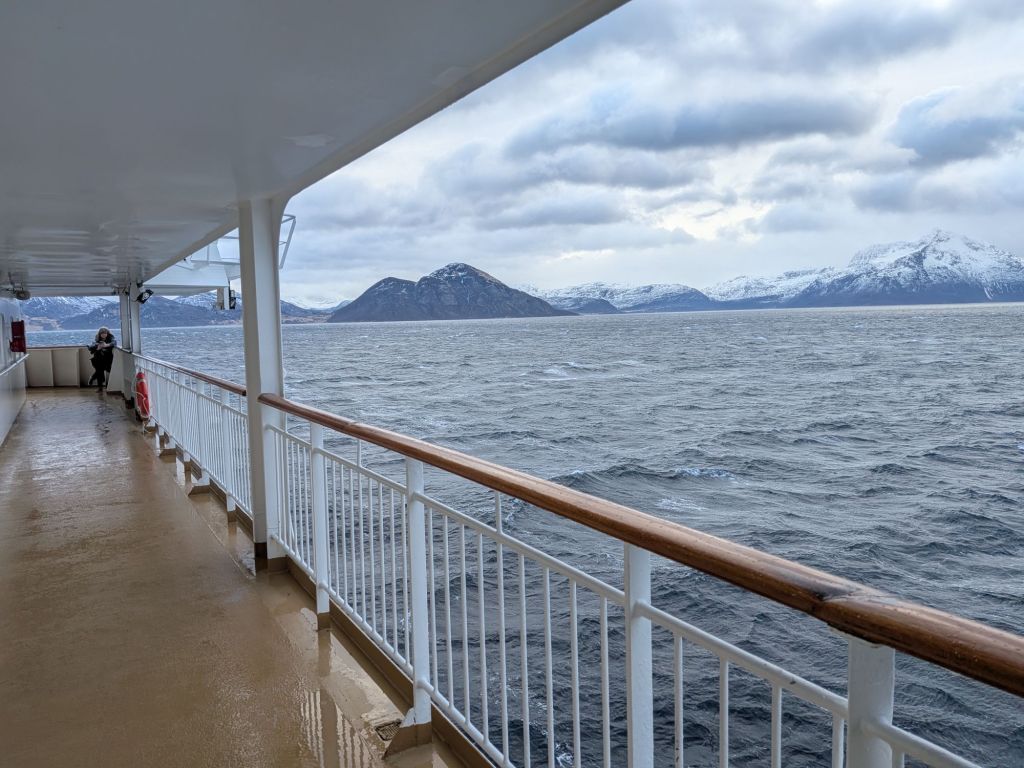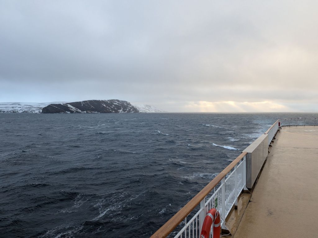 Food is good. Ship is stabilized, but no rough weather. This is the most exposed part of the trip, and in really nasty winter weather they sometimes don’t make it past here.