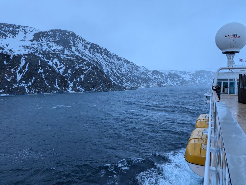 We’re stopped in Kjollefjord, above 72 degrees latitude near the northern cape. This is as far north as we get. Tomorrow morning we arrive in Kirkenes, then turn around.