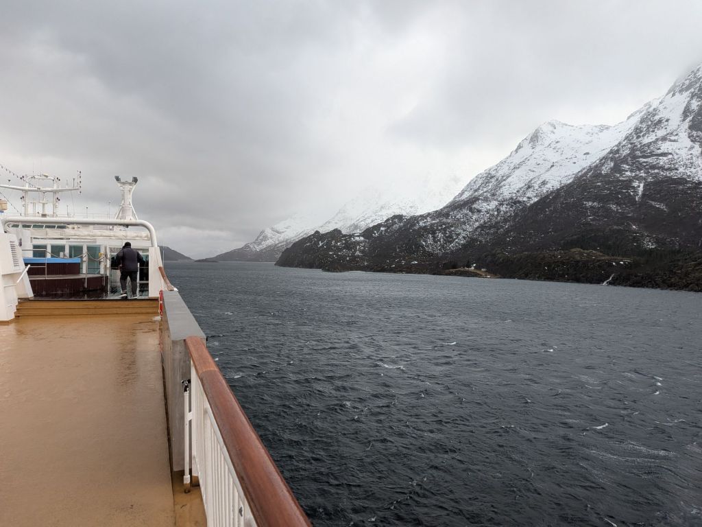The trip south was stormy much of the time. Our outer deck was closed at times, but the top deck was open.