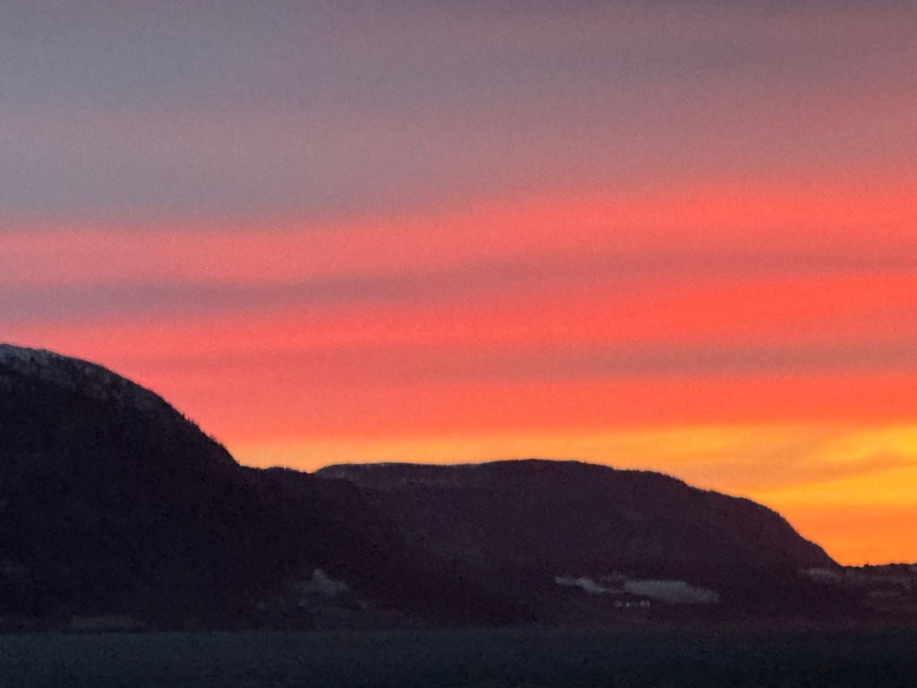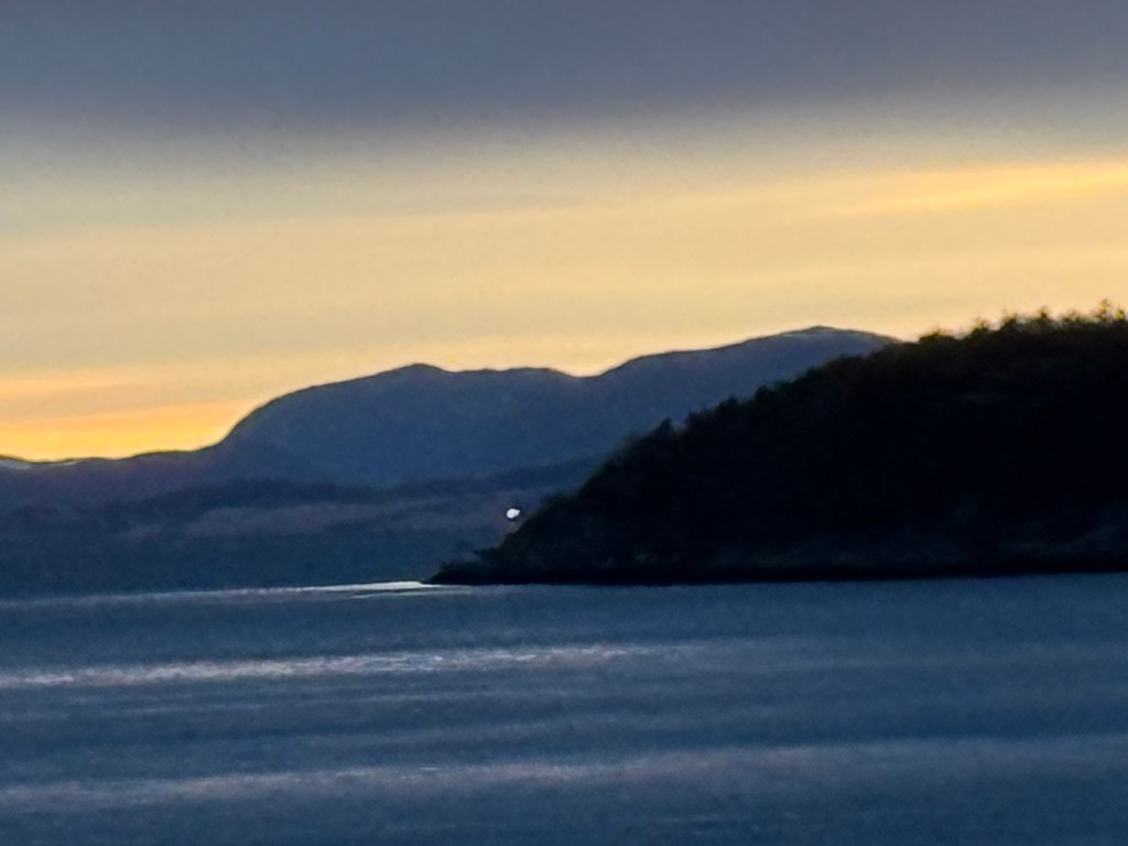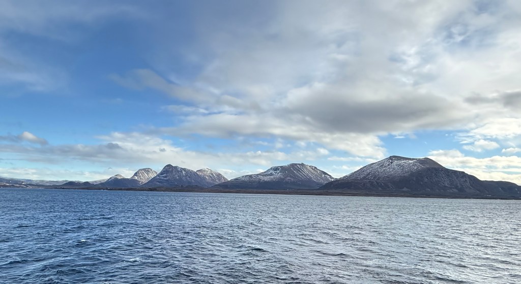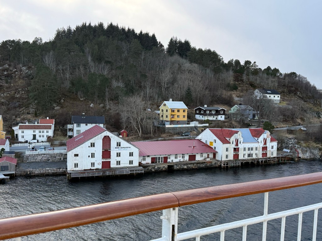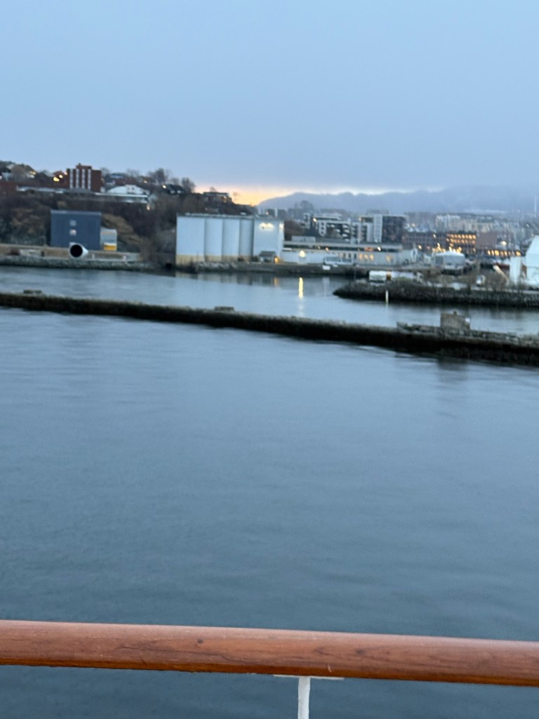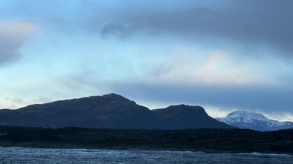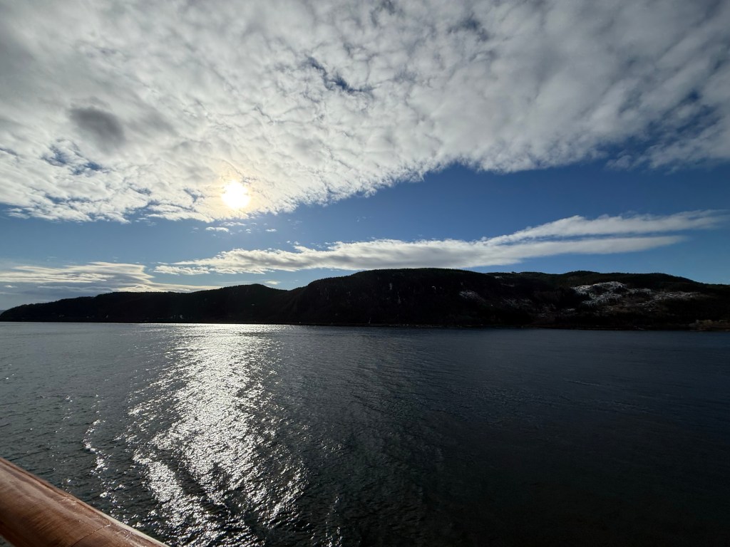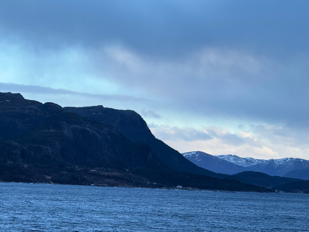 I often got up in the early morning to walk around the ship, looking for northern lights, and waiting for the sun to rise. These photos are from Storfosna (0411) to Averoy (1805).