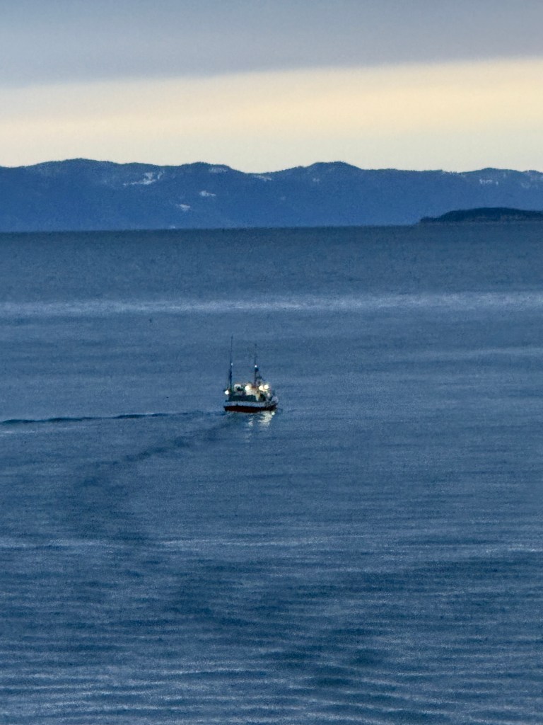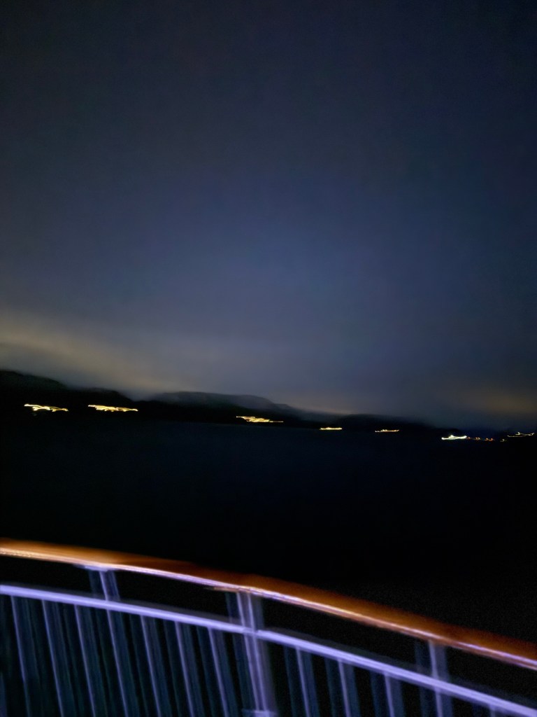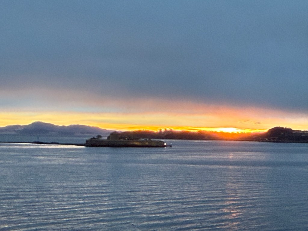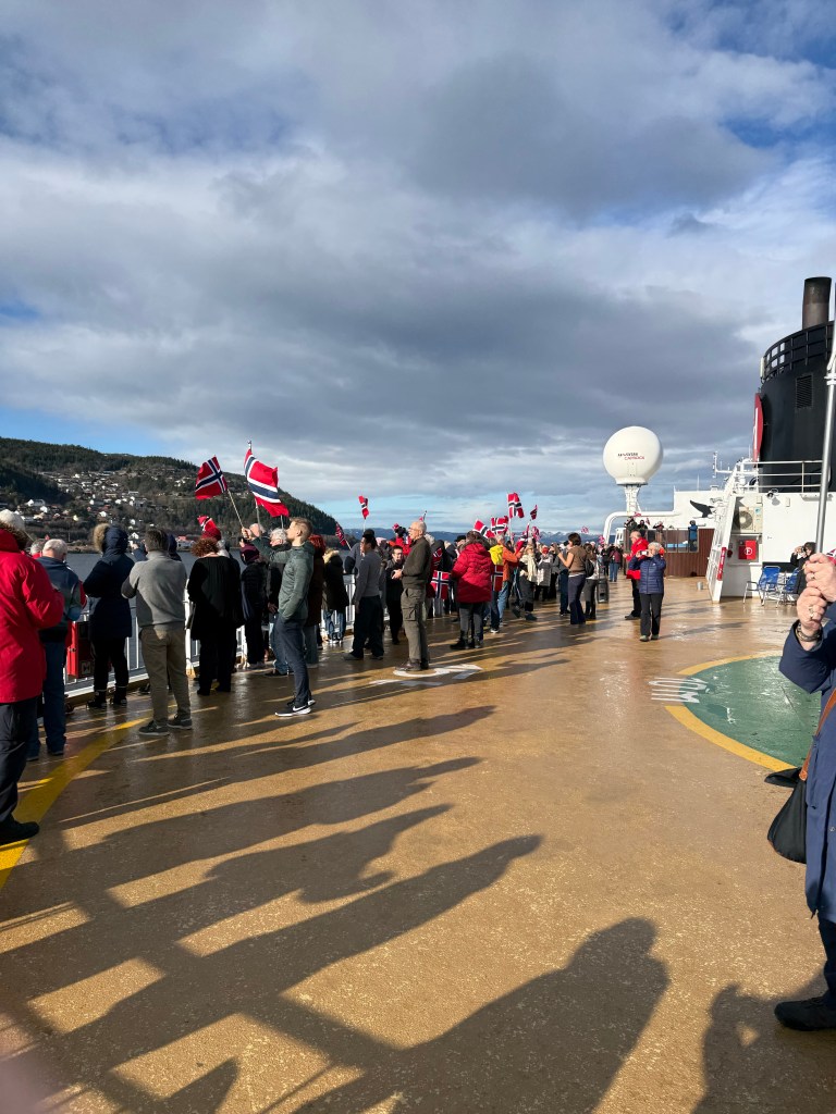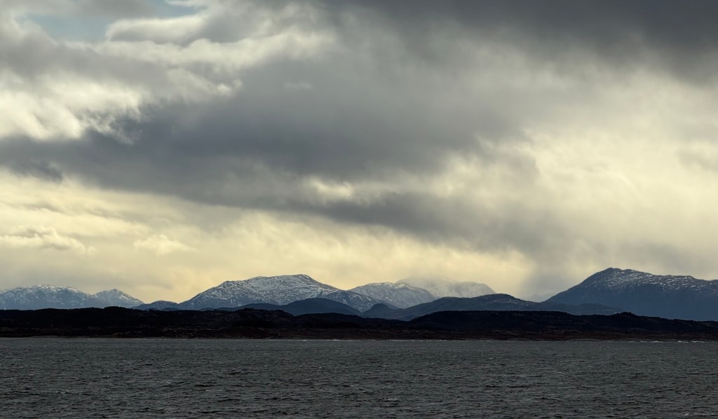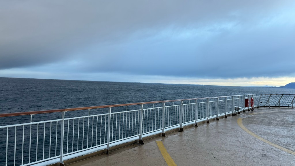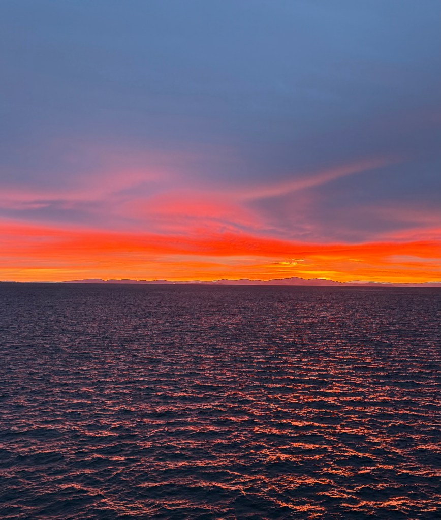 I often got up in the early morning to walk around the ship, looking for northern lights, and waiting for the sun to rise. These photos are from Storfosna (0411) to Averoy (1805).