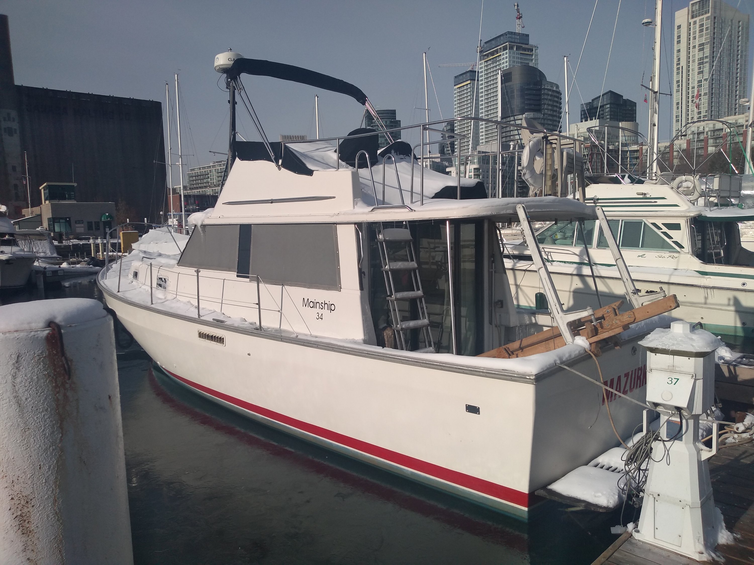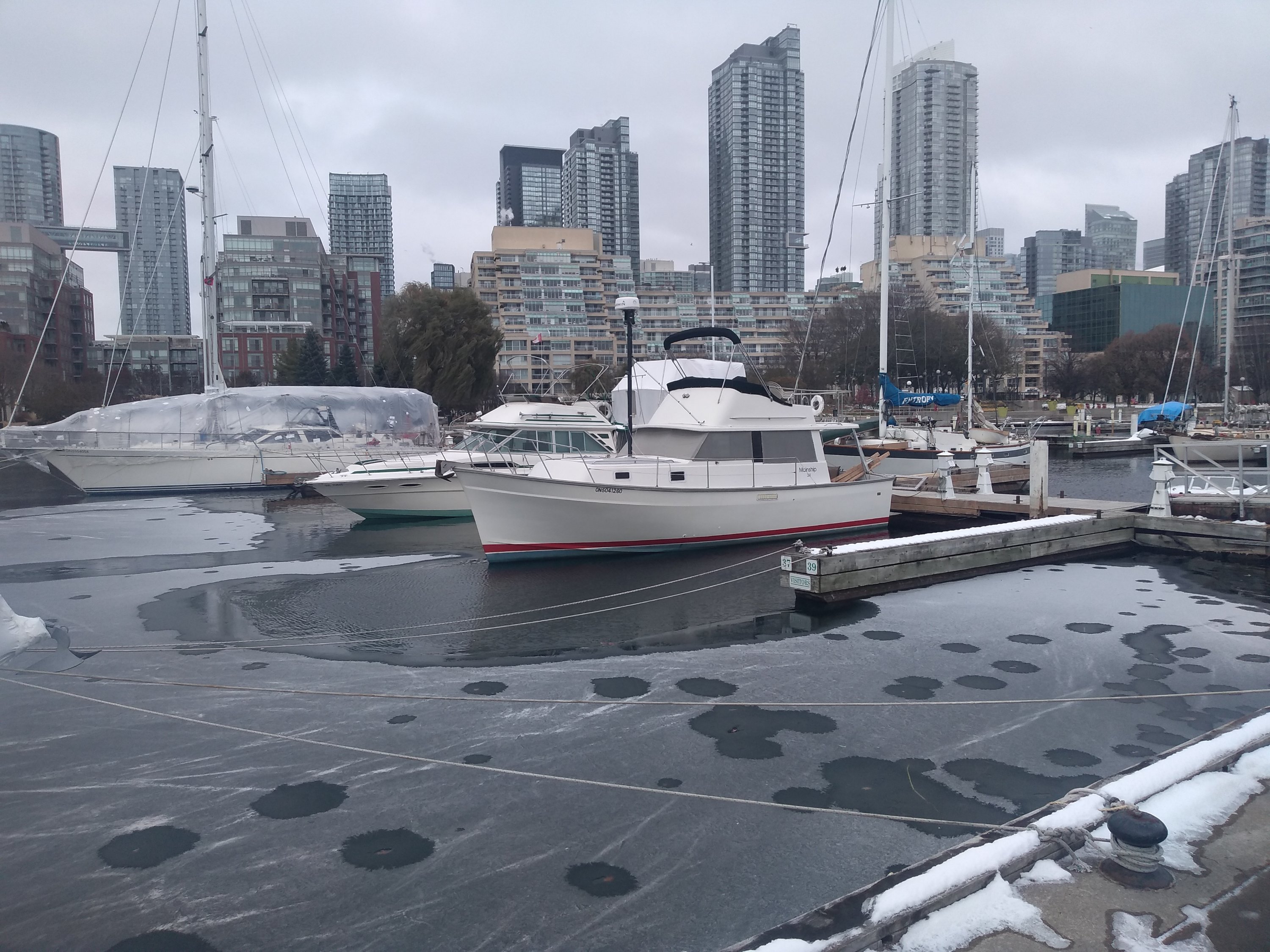 Anyway, moving on… Mazurka has been warm, secure and comfortable. I have a 750w ceramic heater in the ER, and 3 1500w heaters in the cabin. An electric matress pad makes the forward berth comfie. But we’ve had a mild winter. Tonight is as cold as it’s been yet, with an expected low of -14. There’s no ice, and the bubblers are keeping wide areas open. Think I’m going to survive the winter nicely.