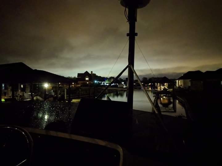 (Night time view from The Mazurka’s berth in Houma, Louisiana)