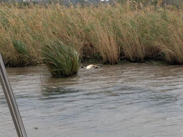 He was dead, unfortunately. The picture doesn’t quite do him justice: we estimated him to be about 10 to 12 feet long, which is a considerable sized gator even in Louisiana, which has both the biggest population of gators in the world, and as well, on average, the largest gators. Also, it was almost certainly a “he,” as male gators grow to the greatest sizes. We briefly debated whether to take the dingy down and go in for a closer look but decided against it: there was no telling how long he’d been dead and, in fact, he looked quite bloated. And it wasn’t exactly like we had the materials for skinning him or anything. So, we checked him out through the binoculars for a fair bit – I was particularly struck by how much his gator-paws looked like splayed hands, very much like The Creature from the Black Lagoon – and continued on our way.