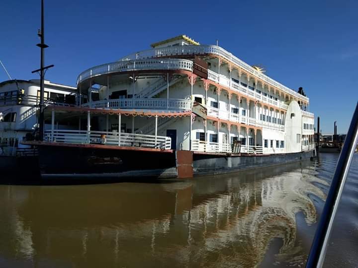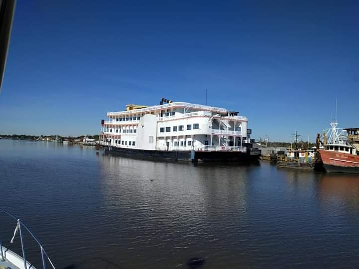(Night time view from The Mazurka’s berth in Houma, Louisiana)