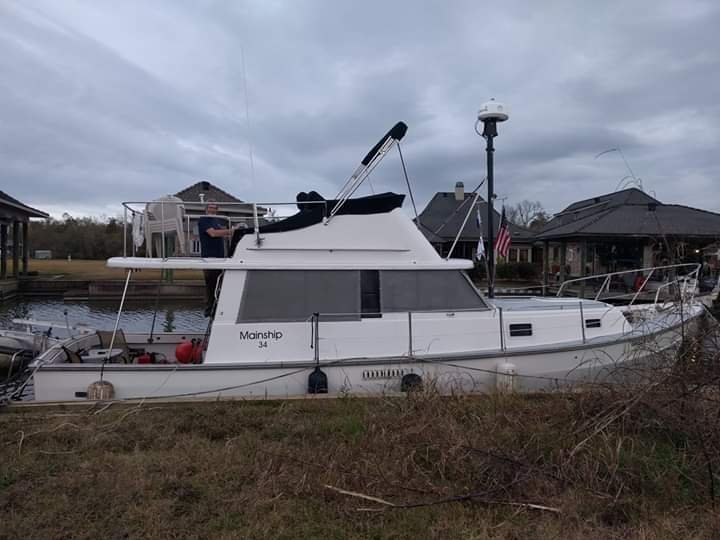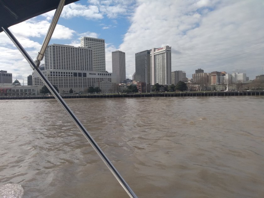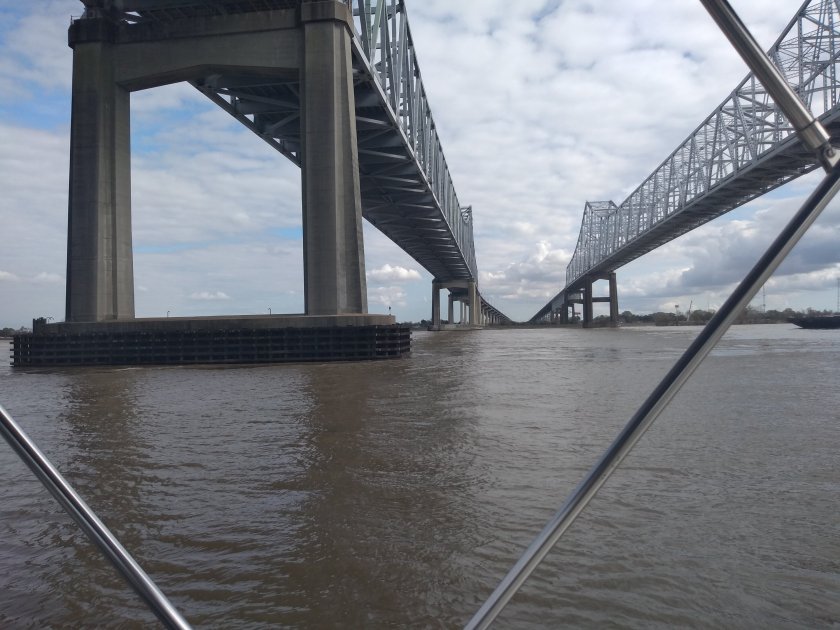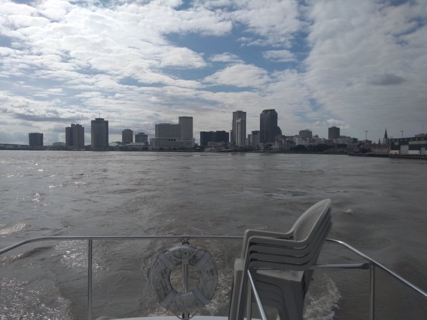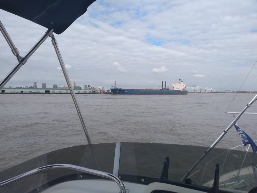 The next morning, while it was still grey and gloomy, the rain had abated, and I made pretty good time from where I was to Houma – I think, minus one or two stops for breakfast and coffee, from where I spent the night, the drive consisted of maybe five turns… albeit spread out over the a distance of a couple of hundred miles. (P.S.: Miles rather than kilometers in the U.S. … that makes the distances seem more imposing). When I arrived, Jeff was out with Ronney, who I was to learn had provided the boat with a berth while Jeff is away from it, but after only about five minutes they showed up. Greetings to Jeff… and he immediately informed me that he’s now smoking – was that OK (only on the exterior decks, not in the cabin) – ? I’d been worrying the whole time about the fact that I’ve recently taken it up again and had bought a pack on the ride – maybe I would take the occasions to quit? Nope! And so, we smoked, and chatted.